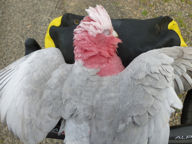 Well it turned out to be a day for birds – a beautiful parrot briefly has a sleep on my handlebar bag before flying off- can u see the wind ruffling his/her beautiful plumage?