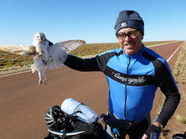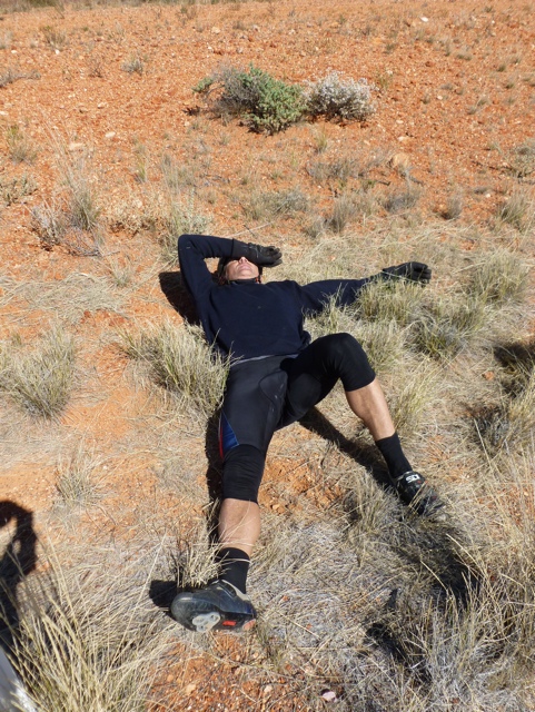 Was a hard day with a constant breeze from west to norwest which made progress slow. The one saving grace on this highway is the smooth surface – the big road trains seem to level it out into a uniform surface that helps for smooth peddling as the hours tick by.
