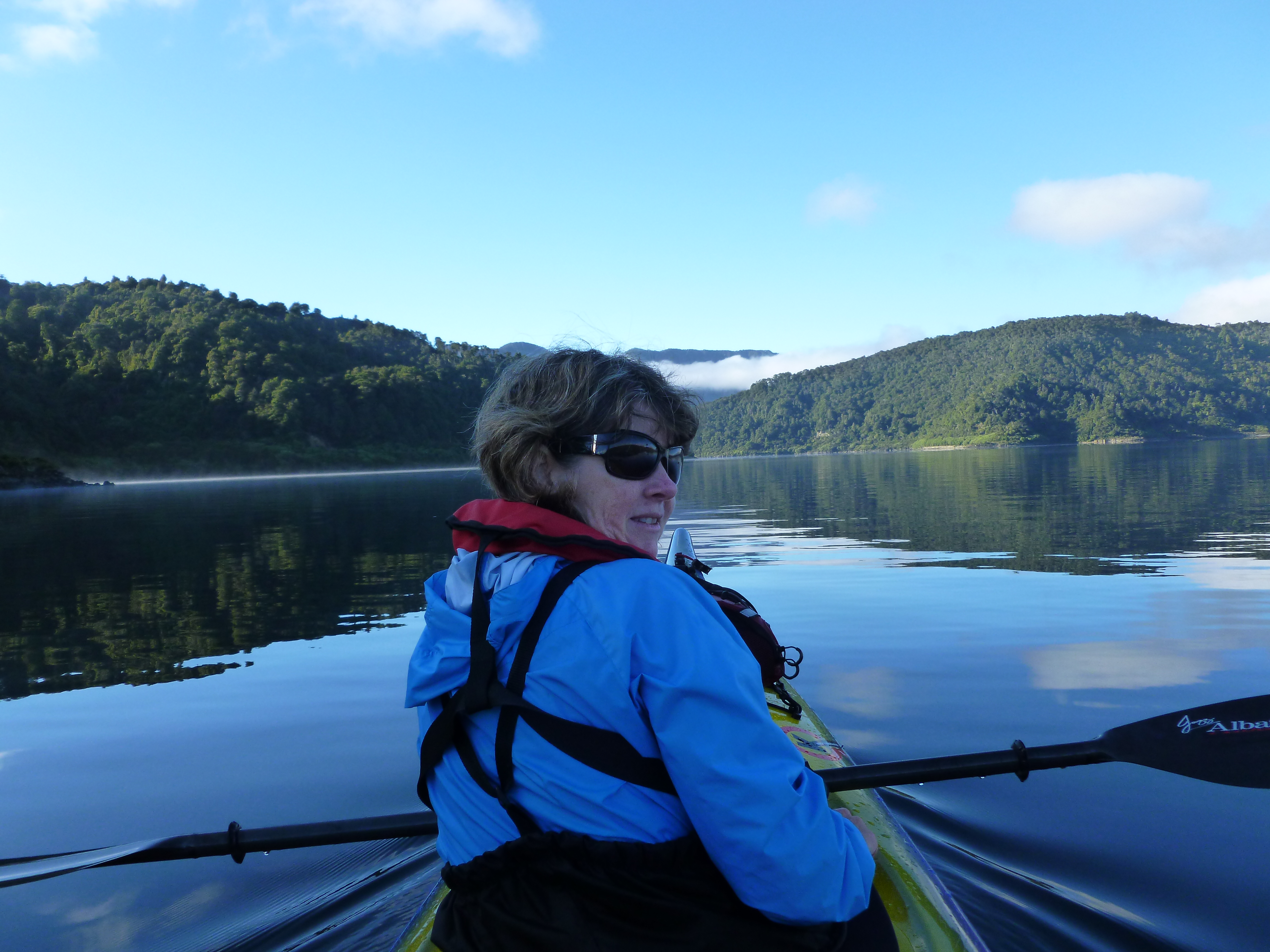 We camped at Tapuaenui site on the first day and did a 2 hour walk to Whanganui hut and back for a looksee. Day 2 saw us head up the lake and battle a 20-30knot gale thru the “narrows” We inched our way forward and finally through to calmer more sheltered waters. We found a great free camp site in the middle of the bush and had a fire to keep us warm through the evening. Better to spend an evening by the fire than retire to the tent at dark.