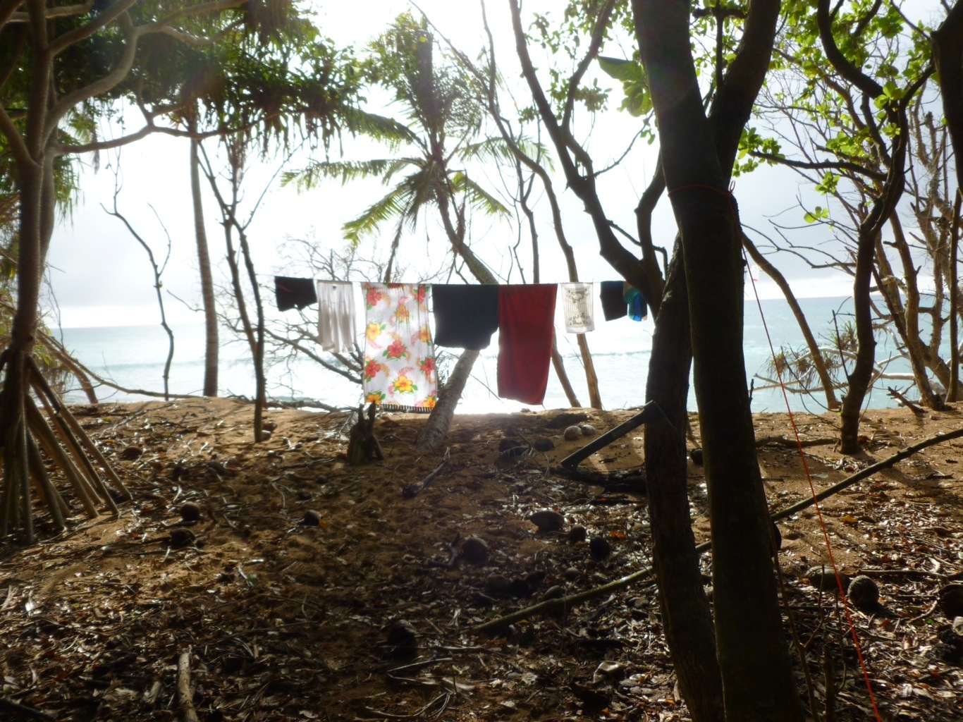 after leaving Tatafa we headed off for a visit to Uiha island – has two villages and we were able to get some bananas , a can of fruit salad and replenish water stocks. With about 30 liters on board we headed off for the island of Tofanga. We caught a nice sized Tuna trawling a kahawhai lure which will be dinner tonight – incredible colours . Again the campsite is very average – camping in sand is a challenge to keep it out of the tent and actually de-grit the body the sand is sticky with this showery humid weather. We got a good soaking before the landing and during with surf making things a bit tricky.