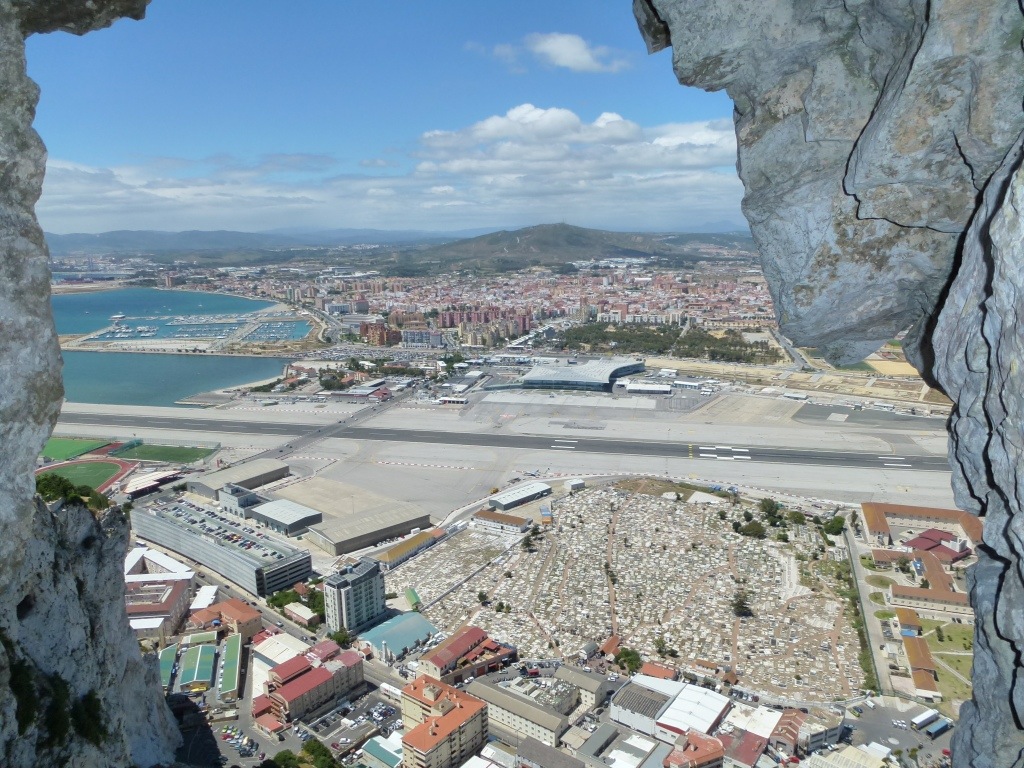 This pic from inside the Rock – one of the tunnels built in 1779 – this gun emplacement looks toward Spain and down on Gibraltars airport runway.