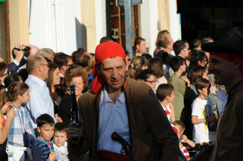 Town closed down Friday for this major parade of folk in period costume. Really spectacular and very colourful- surprised at how many old muskets they still find to bring out for festival days like this. Barb and I dinned in this incredible place with views back towards the old bridge in Ronda.
