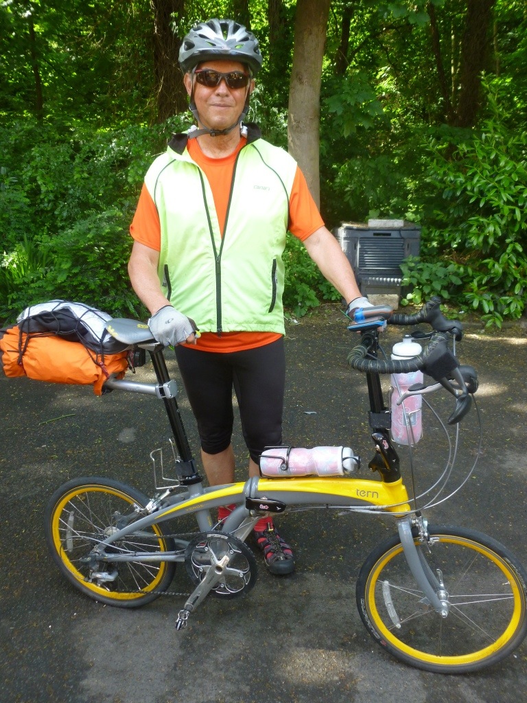 poor photo of David and his Ortlieb real saddle bag. He Really loves this bag and his vision is to see it filled with bottles of single malt as me move into Scotland later in the week. I suspect Marion has made him puts rocks inside the bag – something to toughen him up.