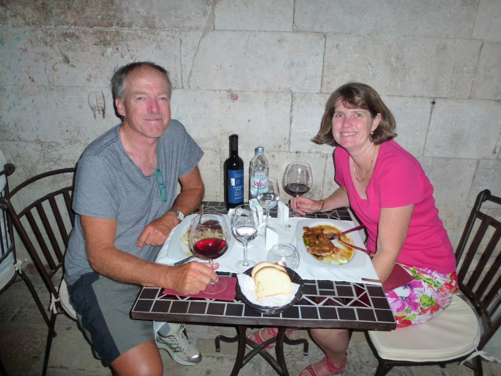 After all those many steps we treated ourselves , yet again , to a wonderful meal in the heart of the old city . Really is now a tourist town , too expensive for regular Croatians to live, most local folk live outside the old city now , just older people hanging on.
