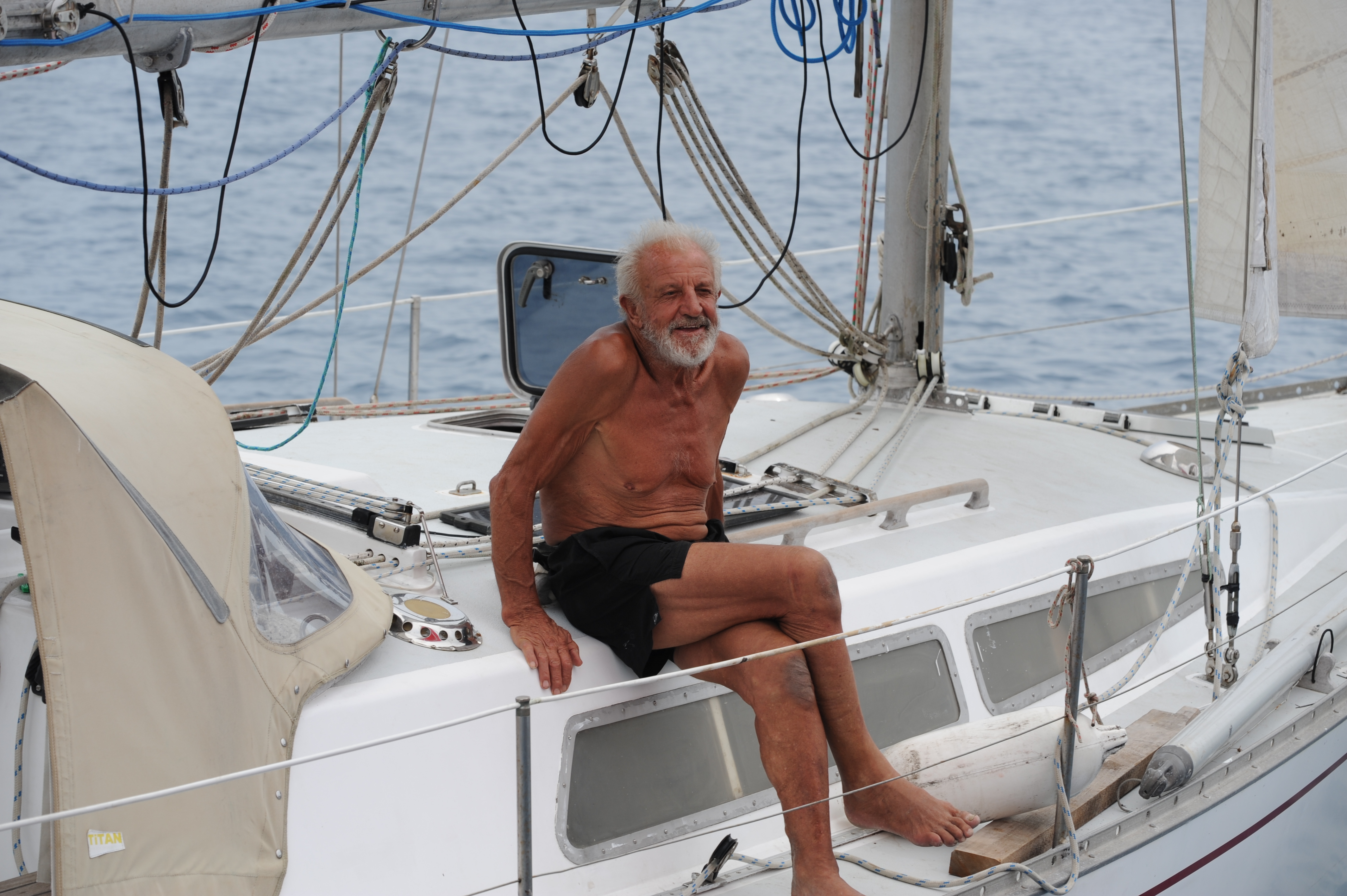 Harley with the “far away look” in his eyes – or was it the sight of the opposition sailing away from us!
