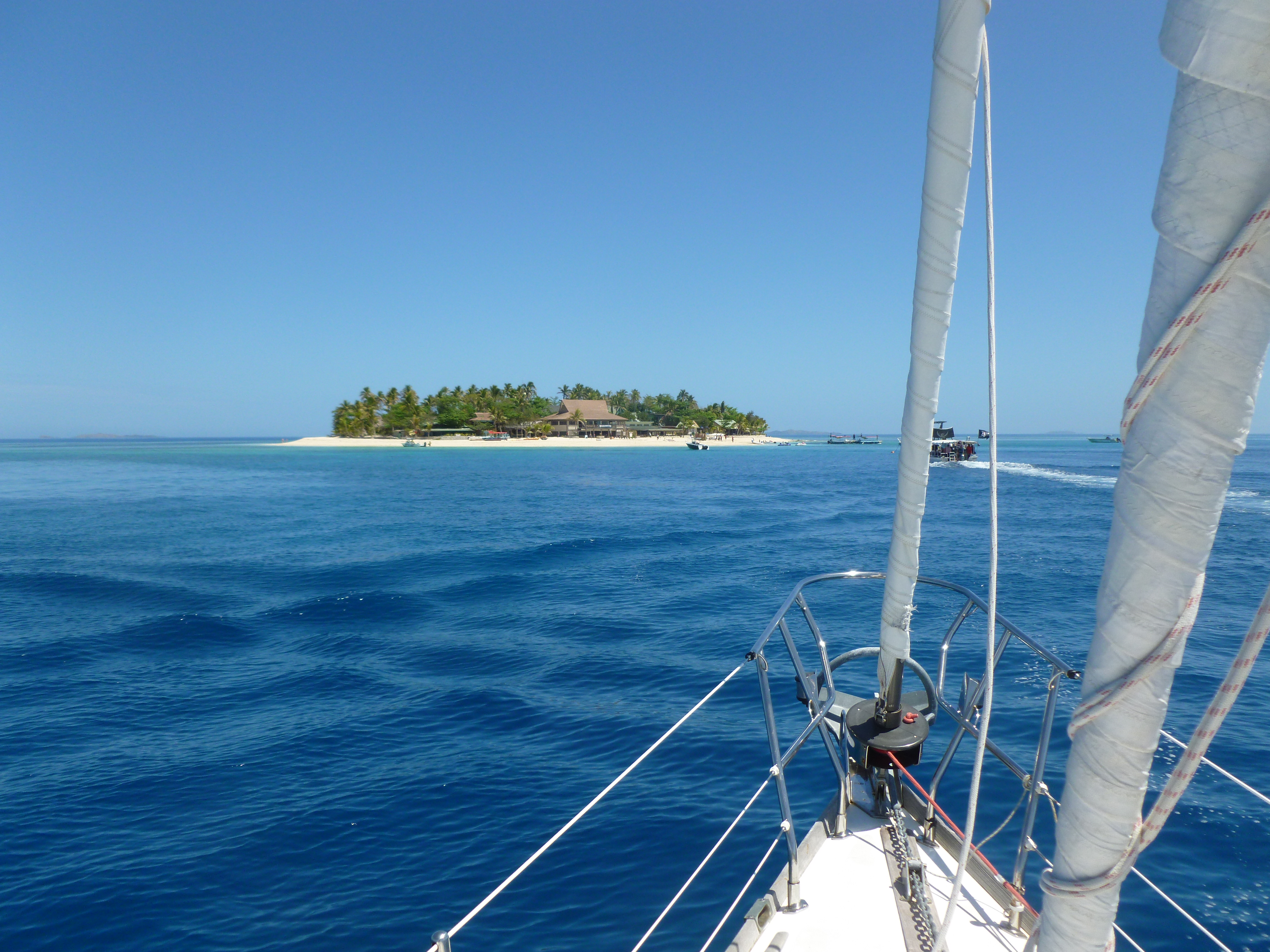 Our Friends Harley , Jennifer and Sophia Earl gave us an invite to join them at Musket cove for some days in the sun, offered an “antidote to the last of the dreary NZ winter”. We flew to Nadi and joined the yacht at Port Denarau and then headed off to Musket Cove – hosts to a well established cruising yacht regatta. Lots of sailers enjoying time together. they are like ships who often pass in the night but finally get some quality time to hang out together and reacquaint . It has a few silly races – plenty of food and very cheap drink – for example a corona or a fiji bitter only costing $3.24 NZ each.