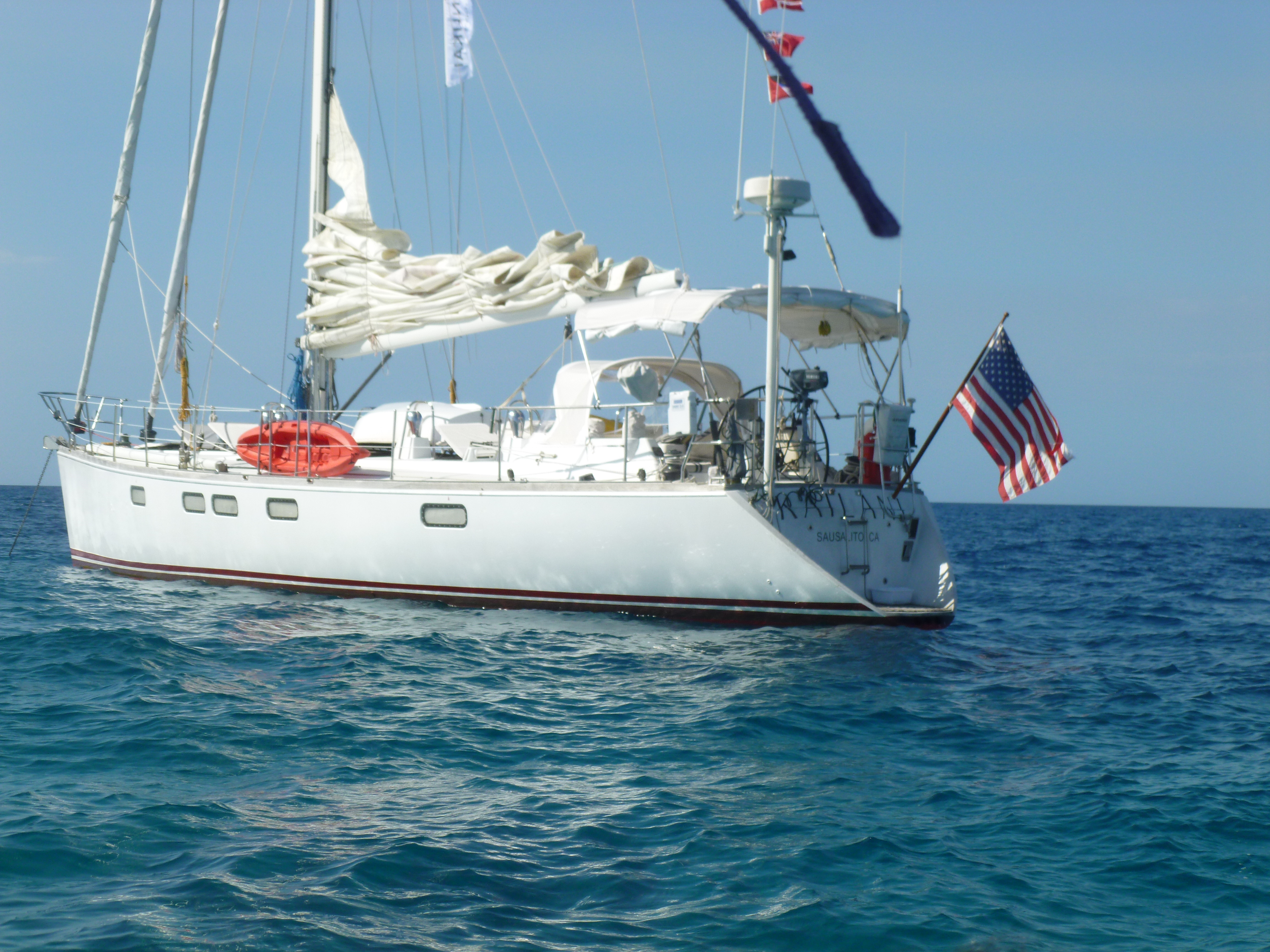 KAILANI – a 63ft “deersfoot” – was built way back in 1990 at salthouse’s boatyard nz and somehow was found and purchased by Harley and Jenn from a marina way up in Turkey – Marmaris as I recall. She is a fast boat – long water line – and with a good crew and lots of wind she can move quickly.