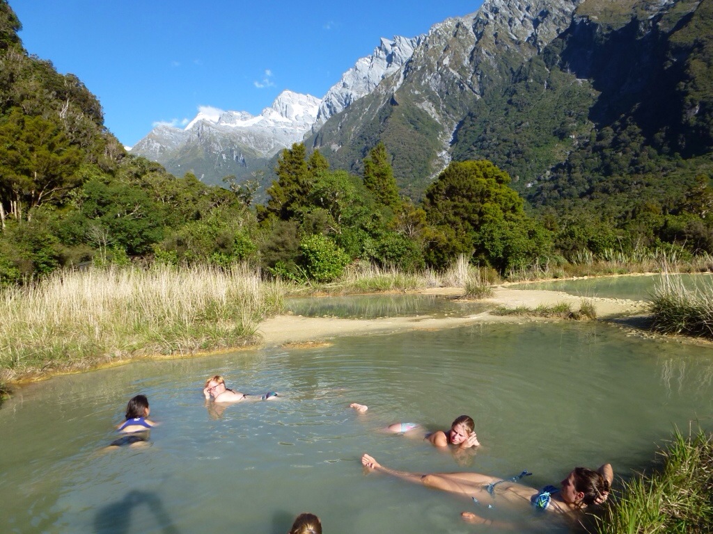 We took a full 6 hours to make the 18 km route – the attraction at the end was a hot spring at welcome flat – not deep pools but nevertheless lovely 40 degrees c mud spas. Lots of German kids present – doing an adventurous OE.