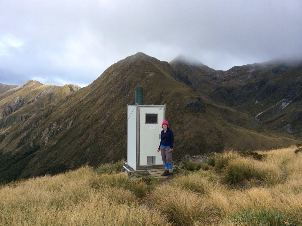 Room with a view – the razor sharp ridge from Mt Luxmore give incredible views of the steep country but if you gotta go you gotta go and girls prefer nice places