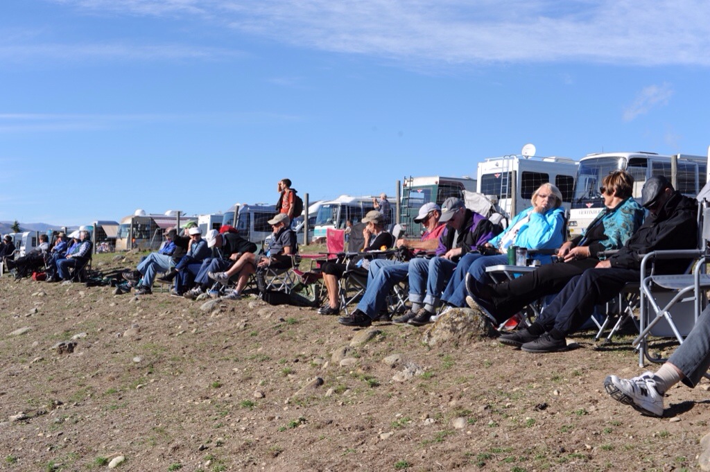 The ridge line is lined with us motor home folk – most outside sitting on deck chairs soaking up the occasion – an energetically steep walk down to the airfield itself