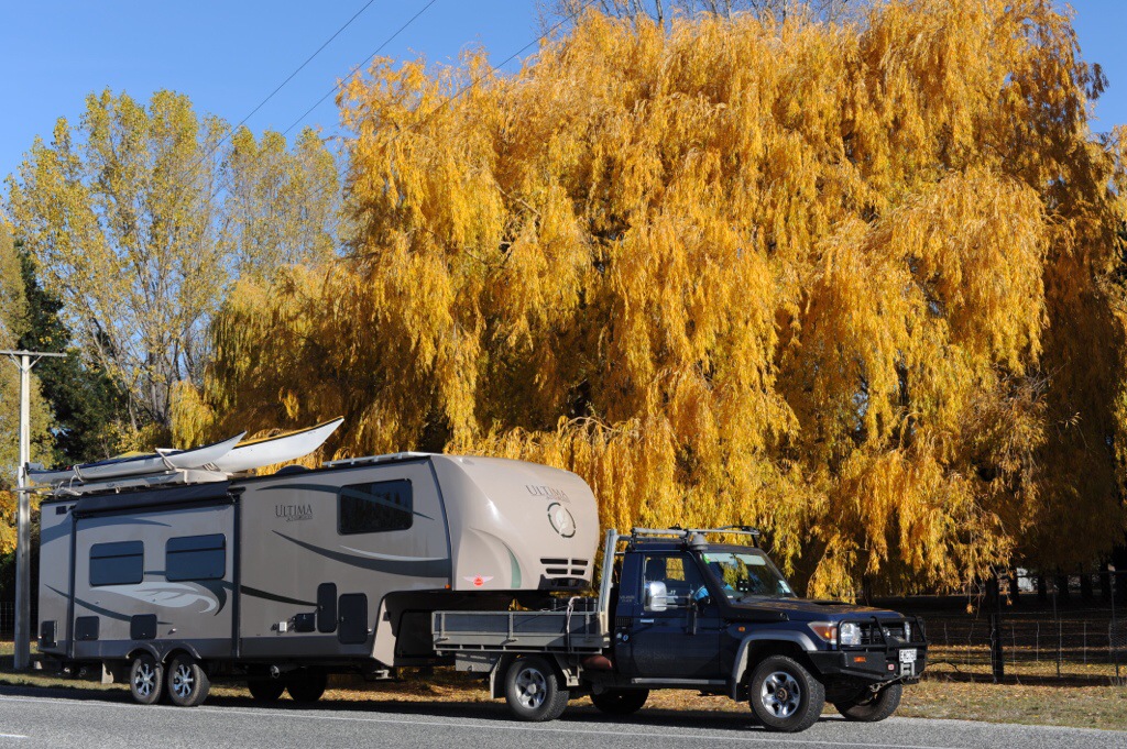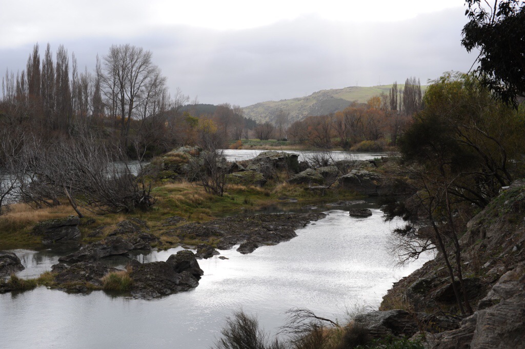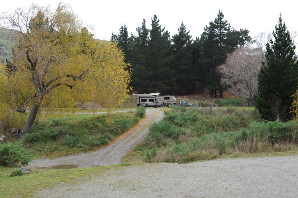 Free camping “Pinders Pond ” close to Roxburgh. Lovely spot off a quiet road and alongside the fast flowing moody Clutha river. The new cycle track follows the river for something like 75 Kms – another great ride for sometime in the future. Spent the night here – just us.
