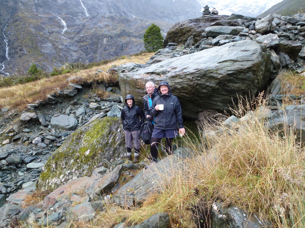 Above the bush line we had light rain but still a reasonable view of the glacier above