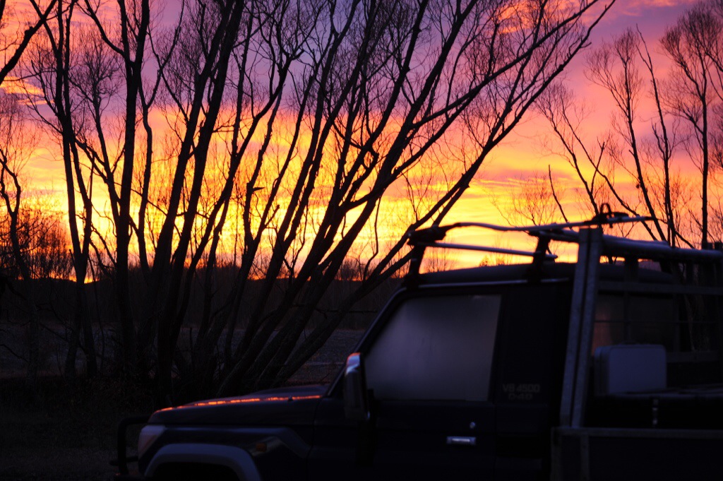 Very chilly night – minus 1 outside and a mere 5 degrees c inside before I pushed the rocket button on our diesel heater. it starts off sounding a little like a turbine jet engine but before too too long the whole van is back to a workable 20 dgrees c.
