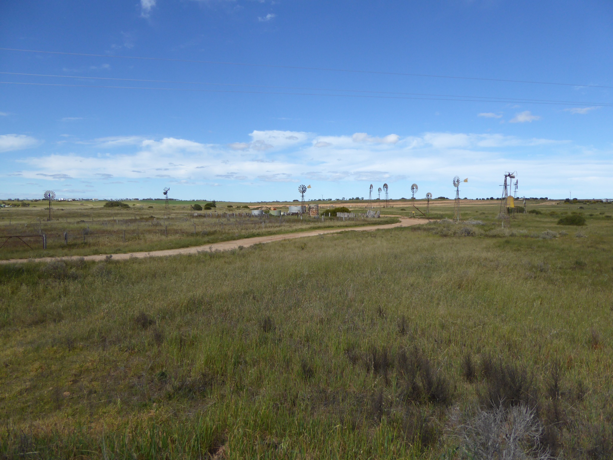Penong is a very small settlement located on the Western edge of South Australia’s grain growing belt. The town itself is an easy 75 kilometres drive to the west of Ceduna, or coming from the opposite direction it is situated 78 kilometres east of Nundroo Roadhouse. Scattered around Penong are dozens of windmills that pump water from the Anjutabie water Basin. This water is supplemented by the use of rain water and water is also carted by truck from a reticulated water supply connected to the Tod River pipeline some 15 kilometres east of Penong. South of Penong are massive deposits of salt and gypsum in Lake McDonnell. Each year 100,000 tonnes of salt are harvested from brine pools and exported from Port Thevenard to the eastern States. Lake McDonnell’s gypsum deposits are the largest in the Southern Hemisphere and cover an area of 87 square kilometres to an average depth of 4.8 metres. That’s a lot of gypsum. Cactus Beach is located 21 kilometres south of Penong and surfers from around the world and Australia frequent the area to surf 1 right hand and 2 left hand breaks.