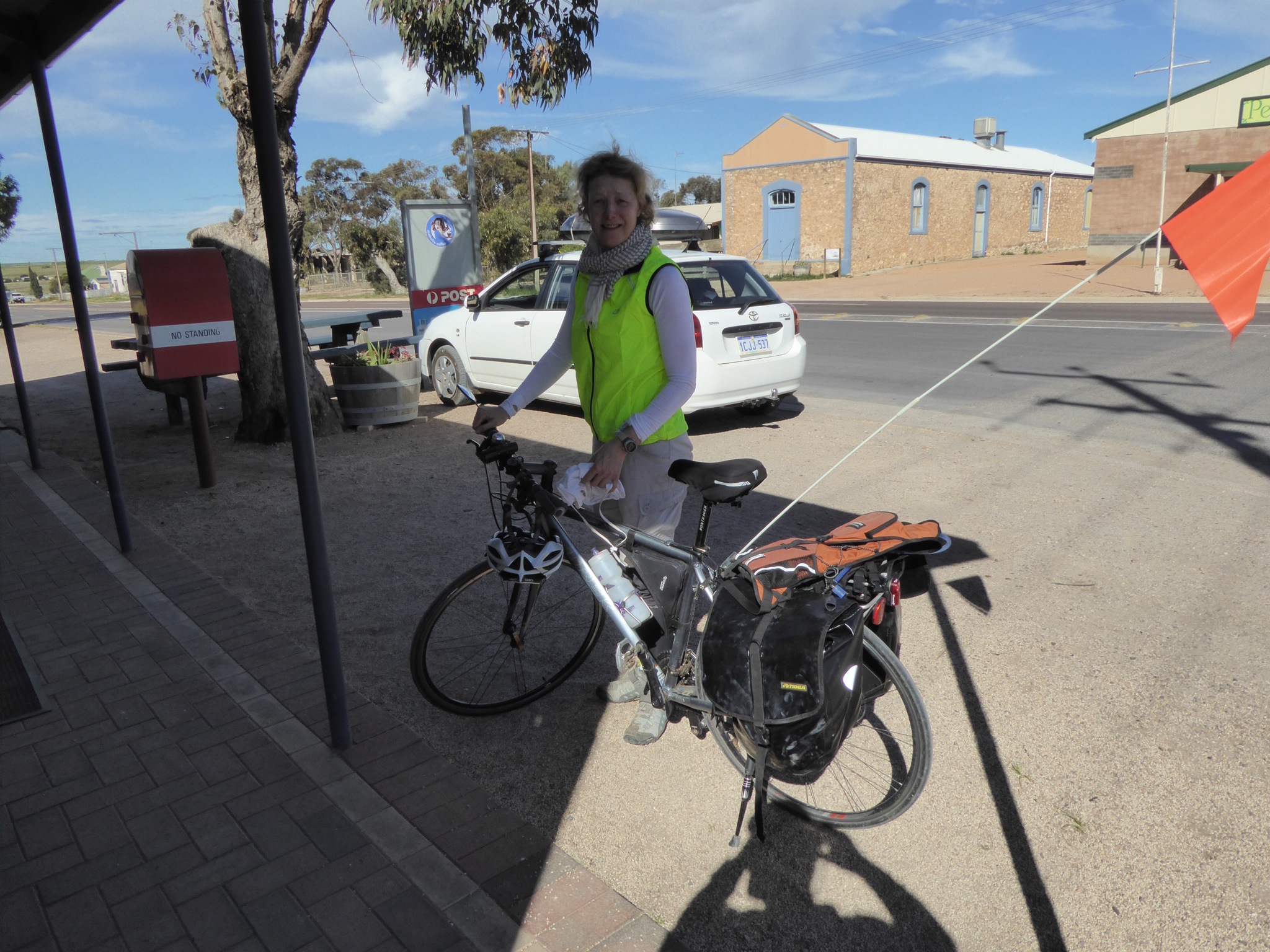 Met Georgie and here support driver Peter who are heading in the opposite direction. She began her ride from Norseman. She has been raising funds for Alzheimer’s after recently having cared for her father who died after having contended with this affliction.