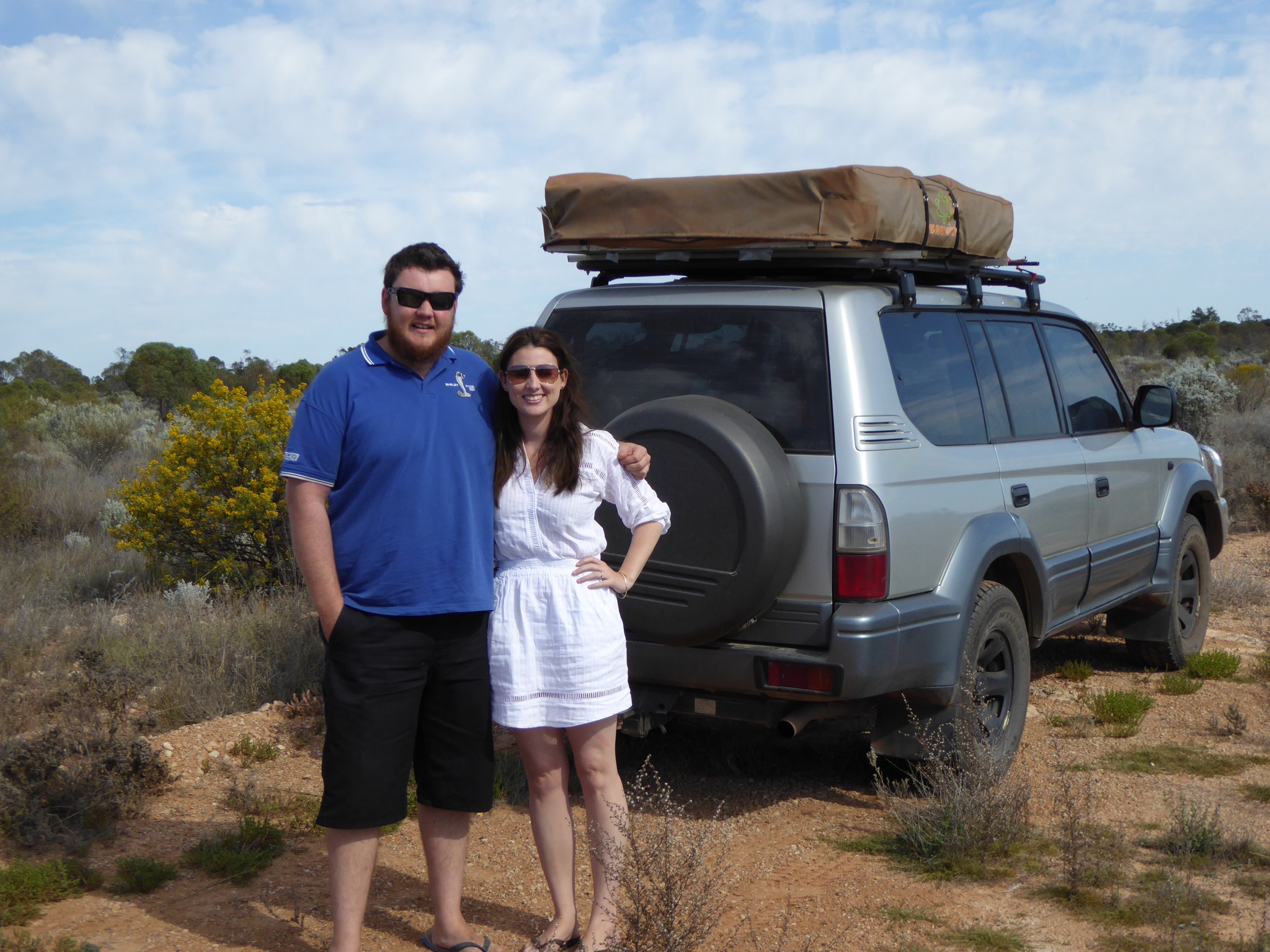 A great help on the day was a nice young couple of Aussy travelers I met at Ciaguna. Ryan and Erin agreed to transport my panniers to Balladonia which made for a much better ride for me. Here they are after catching up with me at about the 25 Kms to go point.