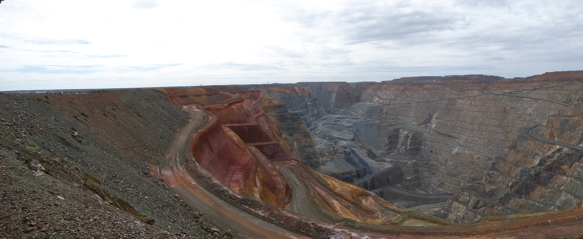 The Fimiston Open Pit, colloquially known as the Super Pit, is Australia’s largest open cut gold mine. The Super Pit is located off the Goldfields Highway on the south-east edge of Kalgoorlie. The pit is oblong in shape and is approximately 3.5 kilometres long, 1.5 kilometres wide and 570 metres deep. At these dimensions, it is large enough to be seen from space.