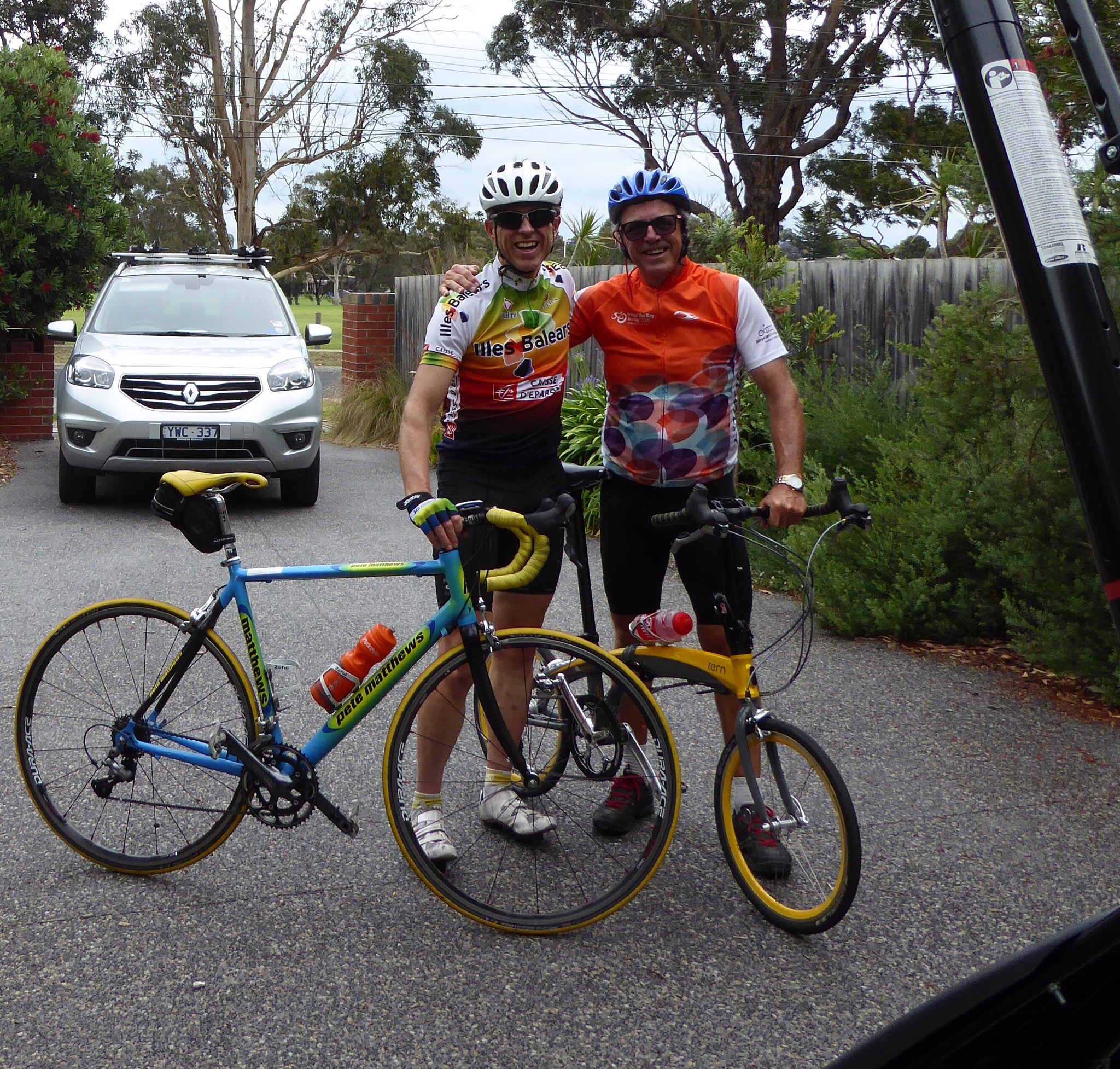 Had a brilliant afternoon ride out along Beach road . The wind was a brisk headwind on the way out but when we turned we flew back enjoying the magnificent views out over Port Philips bay. Ken’s a friend that I met online in the VR world of cycle racing using the TACX trainers – this was in the about 2001 – 2001. We connected in the real world and have been friends ever since.