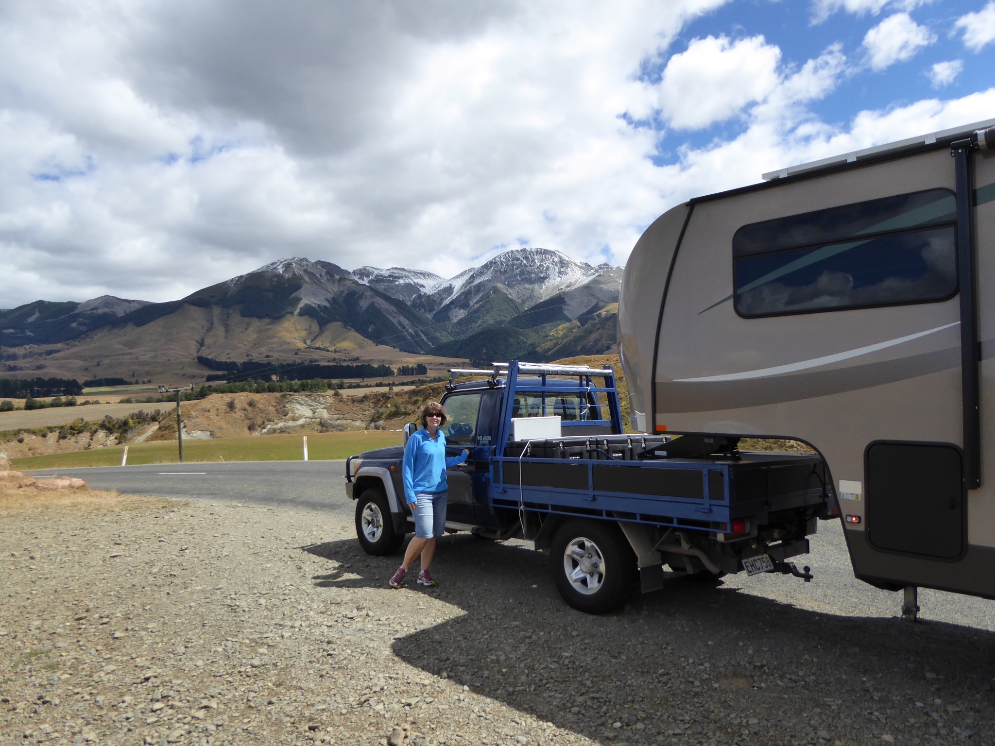 Our destination for the day was Hanmer Springs where we will stop for 2 nights. The route was the inland road from Kaikoura . A back road that drops in and out of some steep River valleys. A cold southerly blow has dropped some unseasonal snow on the tops giving a bite to the air after all the high temperatures of the last few days.