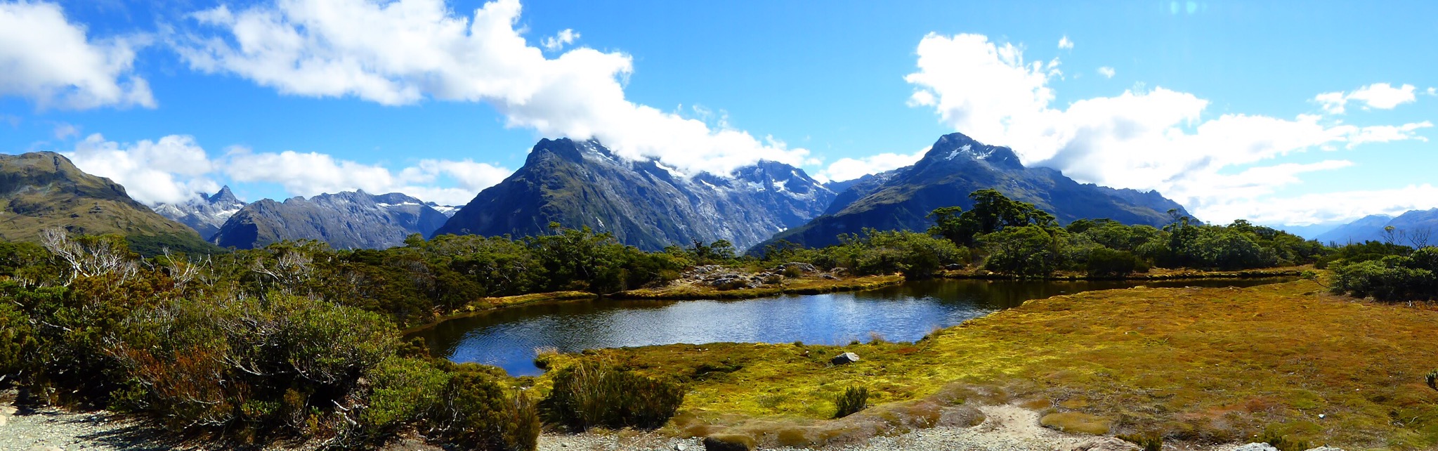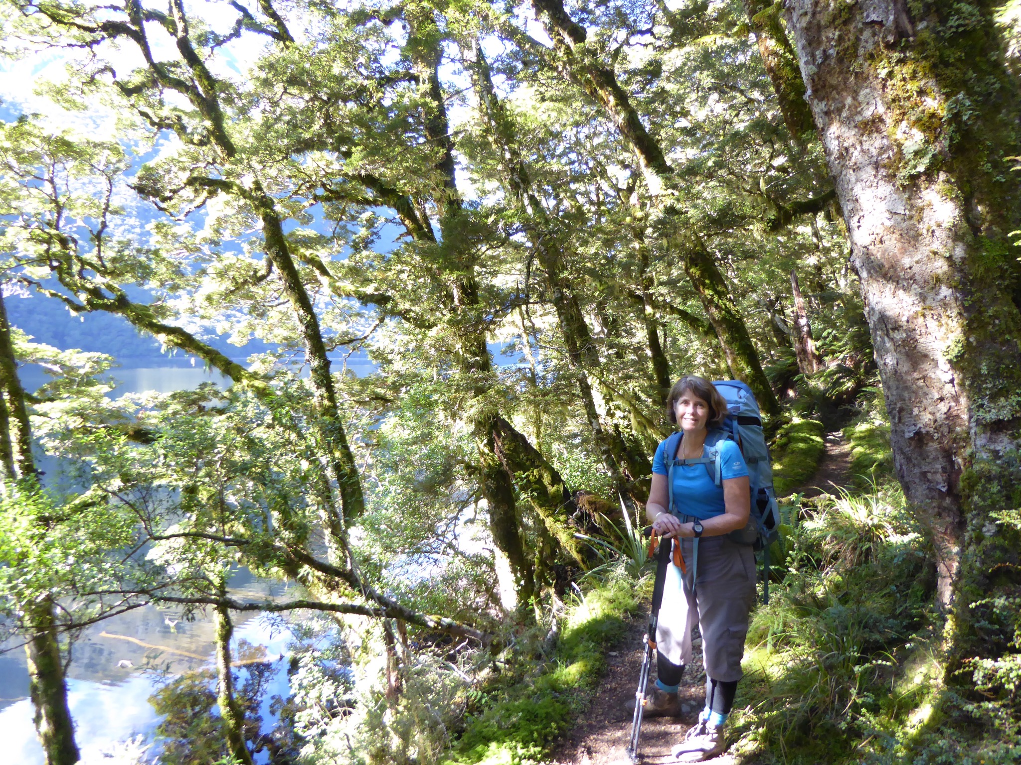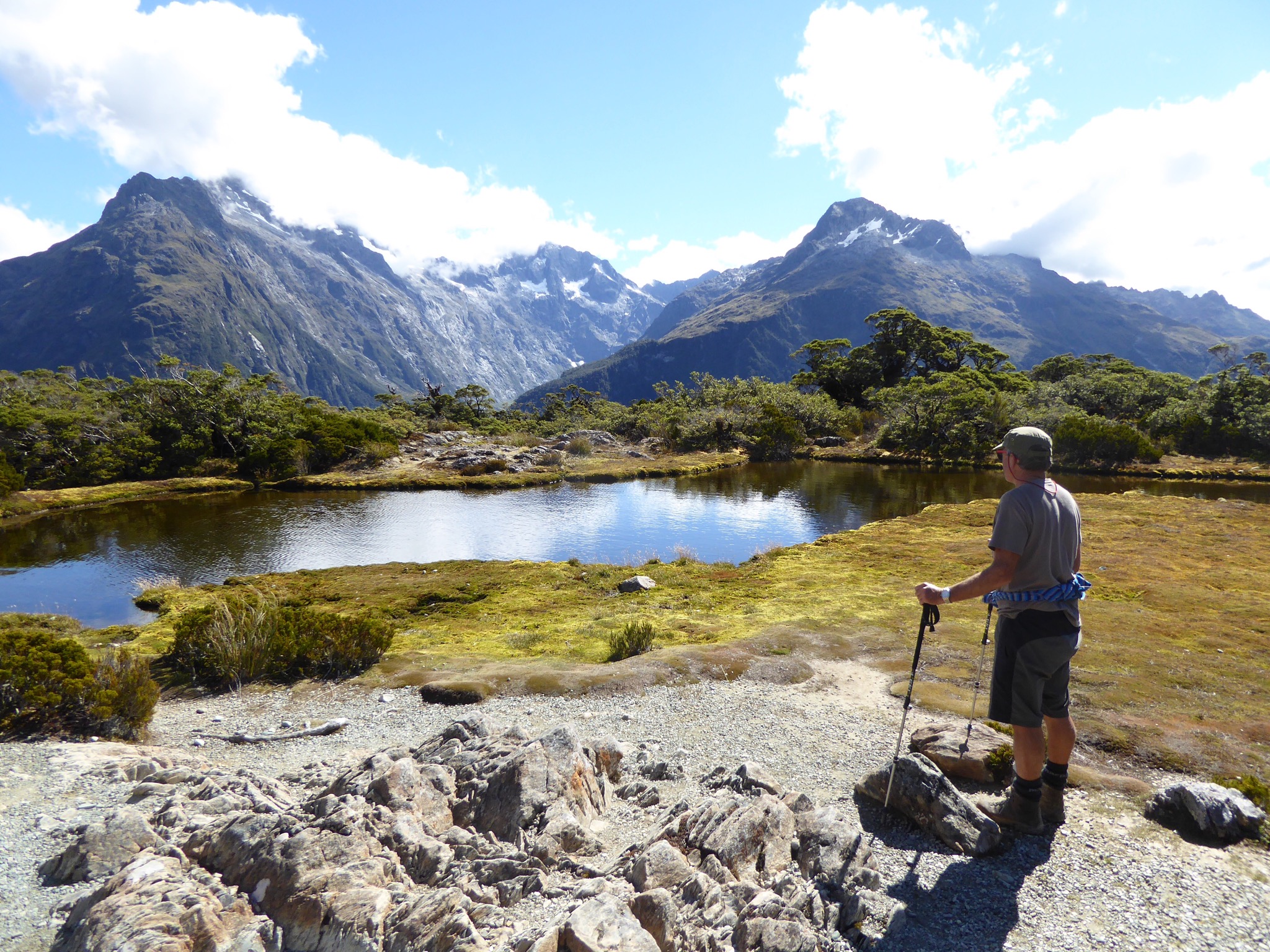 The forecast for the our walk over the Harris Saddle was poor – and indeed we did have cloud that obscured the other side of the Hollyford valley. We put the raincoats on due to some light misty rain but we did not get the heavy rain we had expected. The views from the top of the Harris saddle looking down into Lake Harris were still pretty cool.