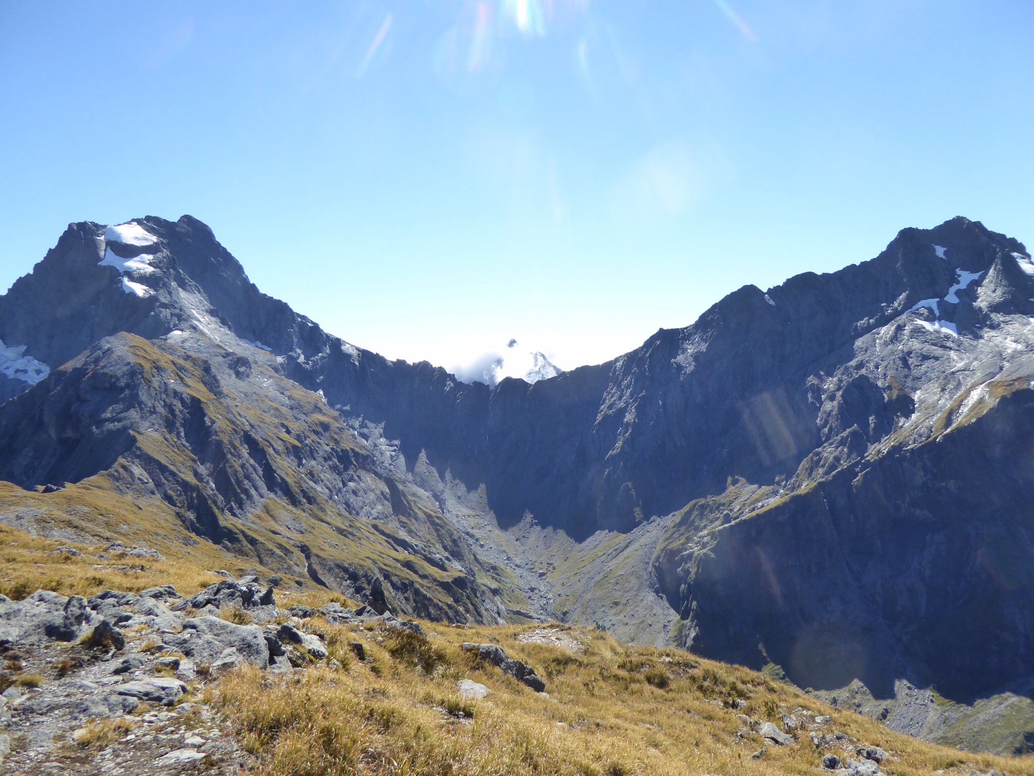The return to lake Crucible was just the warm up to the main event – this time a 1000 metre ascent all the way to the top of the Gillespie saddle at 1600 metres. The tracks ascends steeply alongside the roaring Gillespie River . The track is a little better than the Crucible but still a root tangled scramble through the Beech before breaking thru to tussock to see the towering ridge high above – great vistas abound and truly impressive hills.