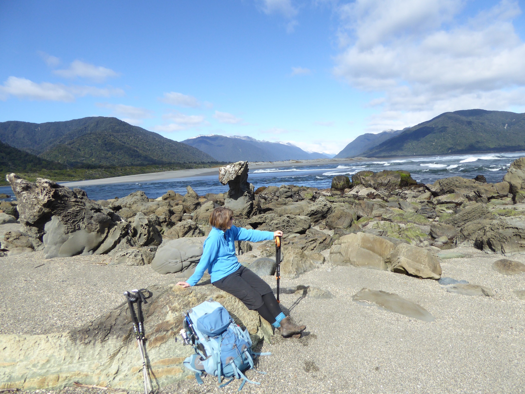 Our destination was the DOC. hut at the river mouth of the Hollyford – took us about 1.5 hours . Stunning location but bitterly cold southerlies have seen us wearing multiple layers. The hut had only 5 other folk – plenty of room and nice and quiet.
