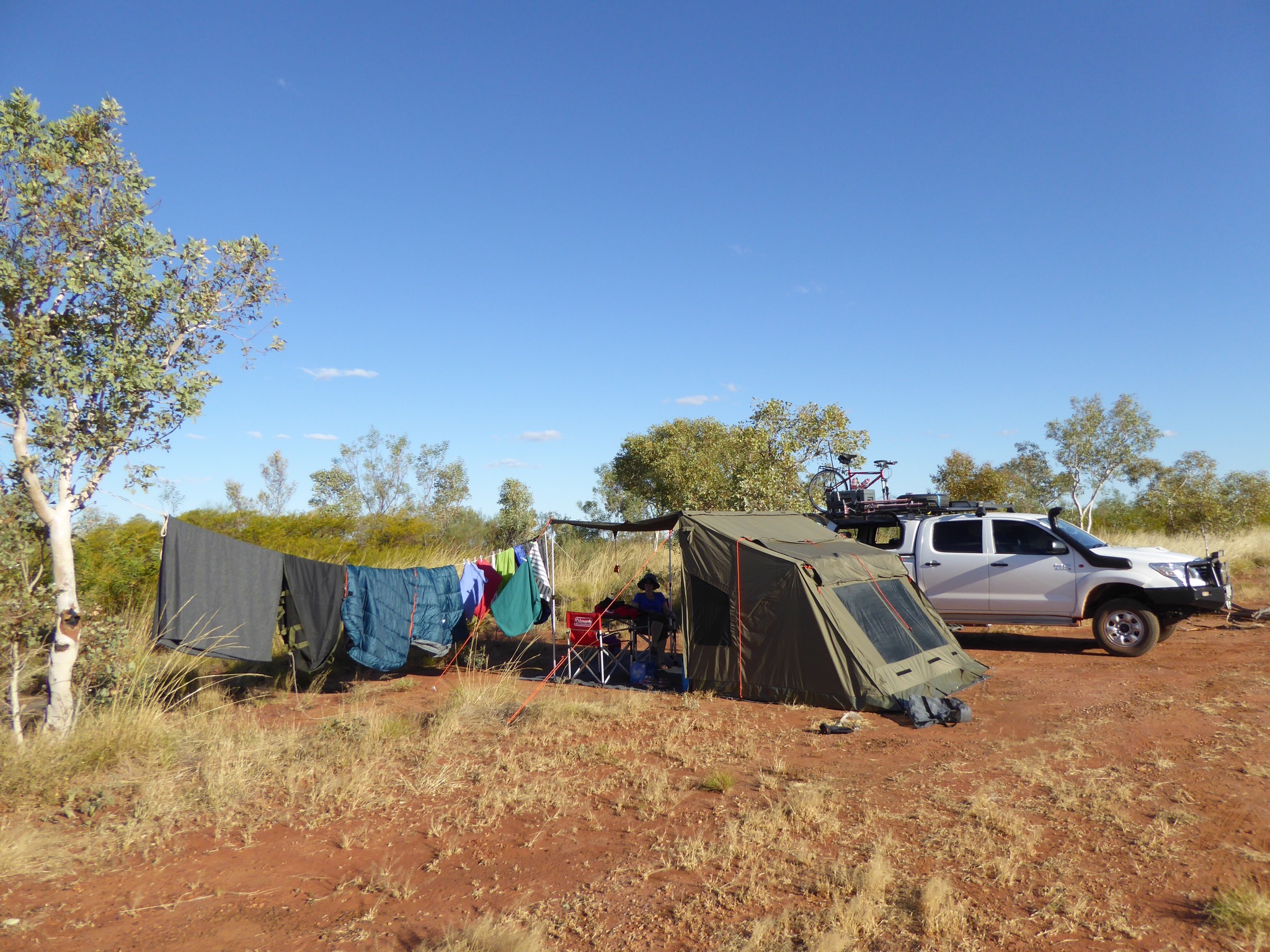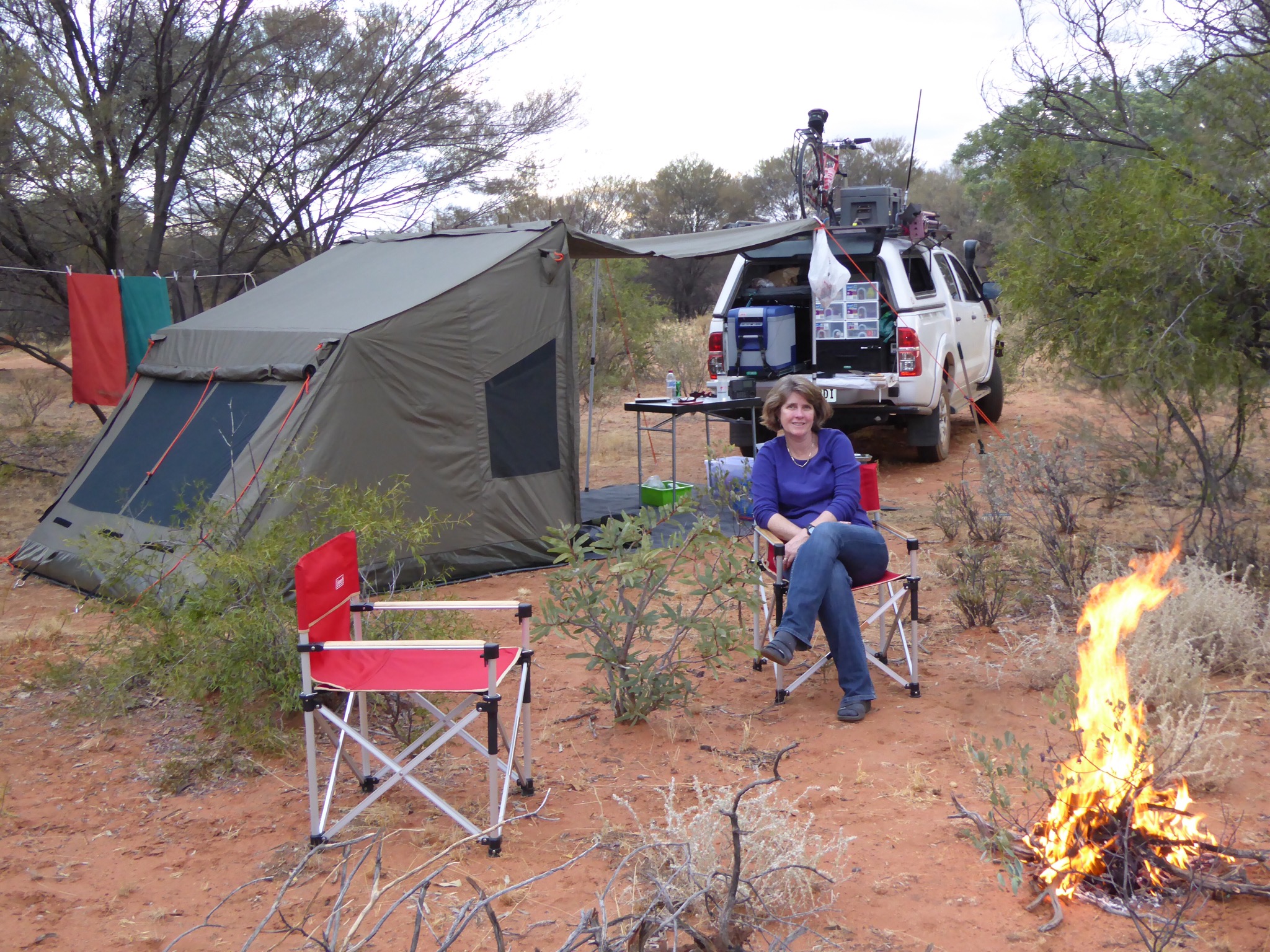 I have been advertising myself to Barb as the perfect alpha male — she gets a great camp fire every night ,I take particular pride in this activity. We have set up a special hot water shower at camp tonight – another addition to our kit and a fully functioning clothes line .She was a happy girl after her shower . And she gets a quality flat white with frothed milk every morning !Topped it all off with this special throne for my queen of the desert. She can now sit in style π no unnecessary pelvic floor exercises now required. No need for the privacy enclosure here , we are completely alone, about as far from other civilized society as it is possible to get .