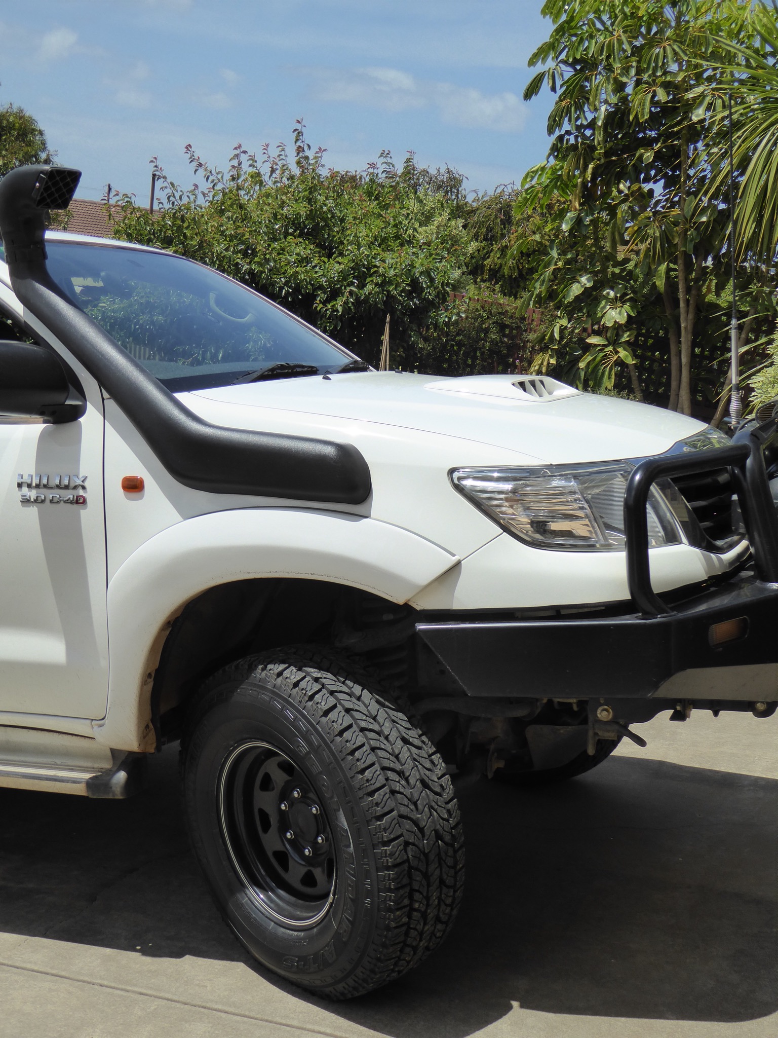 Did some homework on the net — even asked my hilux guru friend ” Outbackjoe ” for his thoughts. He advised 16″ and a good AT type pattern. The market is spoiled for choice and I could have get better but in the end the budget talked loudest. Picked up some Yokahama Geolanders AT . They do a good price and buy 3 and get the 4 th free.