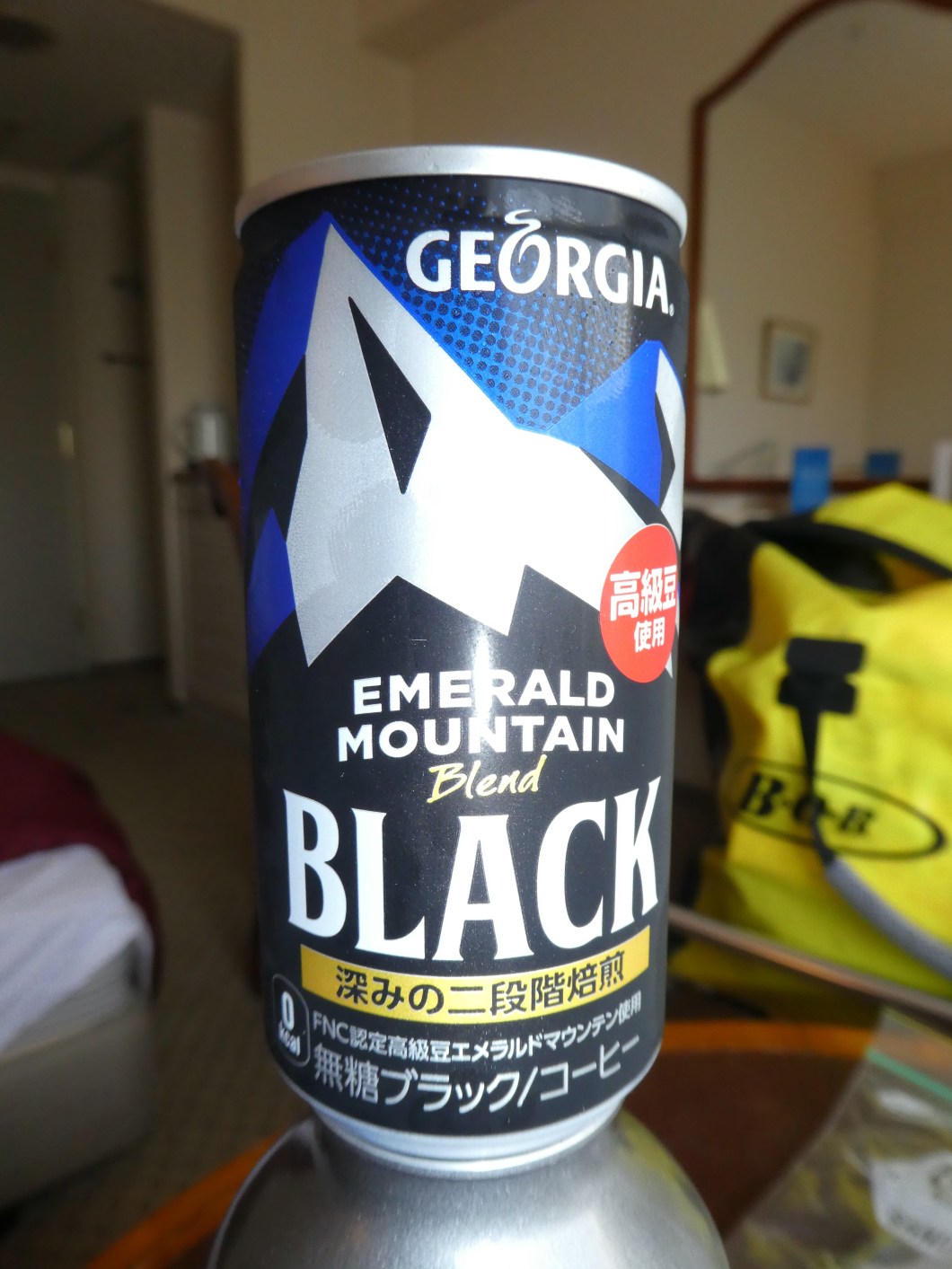 Decided to see how I am going to manage the coffee addiction whilst in Japan. The ever present vending machines have some interesting options. Not badly priced at just over $ 2 nz$ for a small can , about 100 ml my guess.settled for the Georgia Black ( no milk and zero kcal so the can proclaims )
