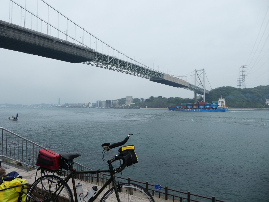 Kyushu and Honshu are separated by a narrow strait that has a constant stream of shipping moving thru , not unlike the Dardanelles in Turkey. Japanese engineers must just love tunnels , there is a vehicle tunnel a bridge and a pedestrian tunnel . Took me a wee while to actually find the later. Had to enter a building and use a lift to drop down to the tunnel entrance . 700 metres , had to walk it and a surprising number of older Japanese folk seemed to be power walking it.