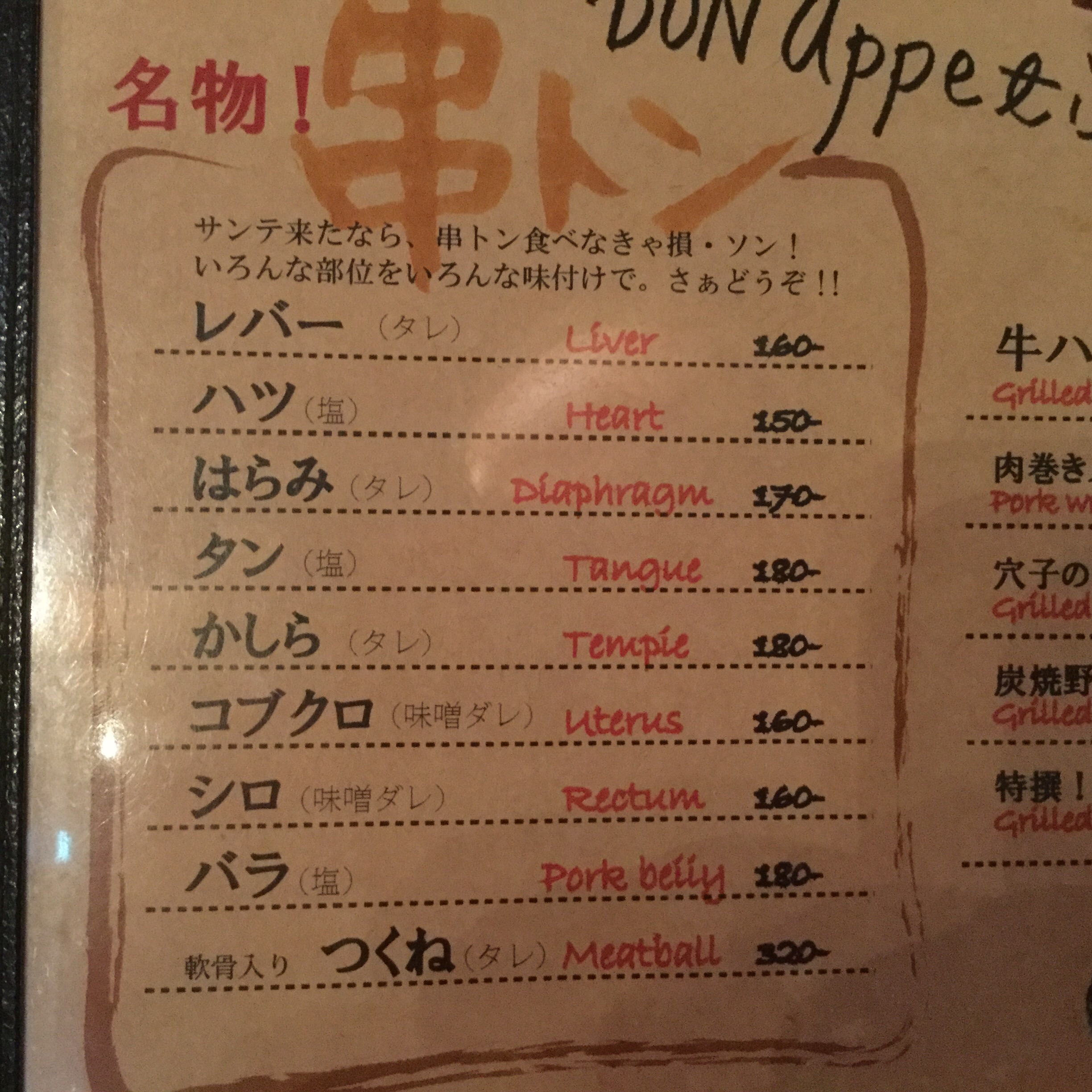 I used my English dictionary to understand what you write in this article. Several part of animal’s internal organs are good foods for Japanese. But I don’t know this restaurant’s English menu could show the correct names of those animal’s part. They often may include many mistakes, I think.