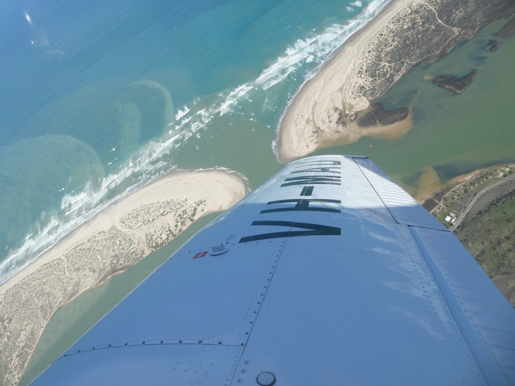 Greg has family connections to Paul ( Lynn’s younger brother ) . Greg trains pilots , among other things , and very kindly took Paul and me out for a great flight in and around Adelaide , Fleurieu Peninsula , Victor Harbour and the mouth of the Murray River. A spectacular flight in fine weather with some turbulence . Tight banking turns to get a close up look at some sights made for a memorable trip 😉 ( pics above of banking turn with a look at the Mouth of the Murray River.) Our flight took all of 90 minutes so it was certainly a great treat and very generous of Greg.