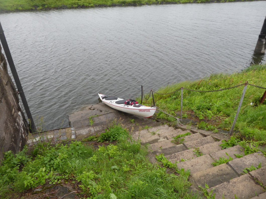 Barb and I had an interesting day paddling. We have adopted strategies for managing our pace and rest stops ” drifts ” the Elbe has km signs each km on the banks. We allow ourselves a ” drift ” every 2 kms. Just a 30 sec break. 10 km marks we often stop for a brief ” out of boat experience ” — arse break and call of nature break if needed. All working well as we use every trick in the book to make of motors cooperate 😉