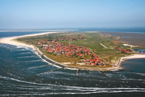 The island of Baltram is one of a chain of small islands just off the coast , and in this very flat land they form a buffer to the coast itself . The area is called Frisia ( famous for Friesian cows ) and like its neighbour Holland it is flood prone dyke controlled land. In fact the locals hereabouts still pay a dyke tax. The tides retreat for kms and provide a chance for a big walk , then a ferry back on the higher tide.