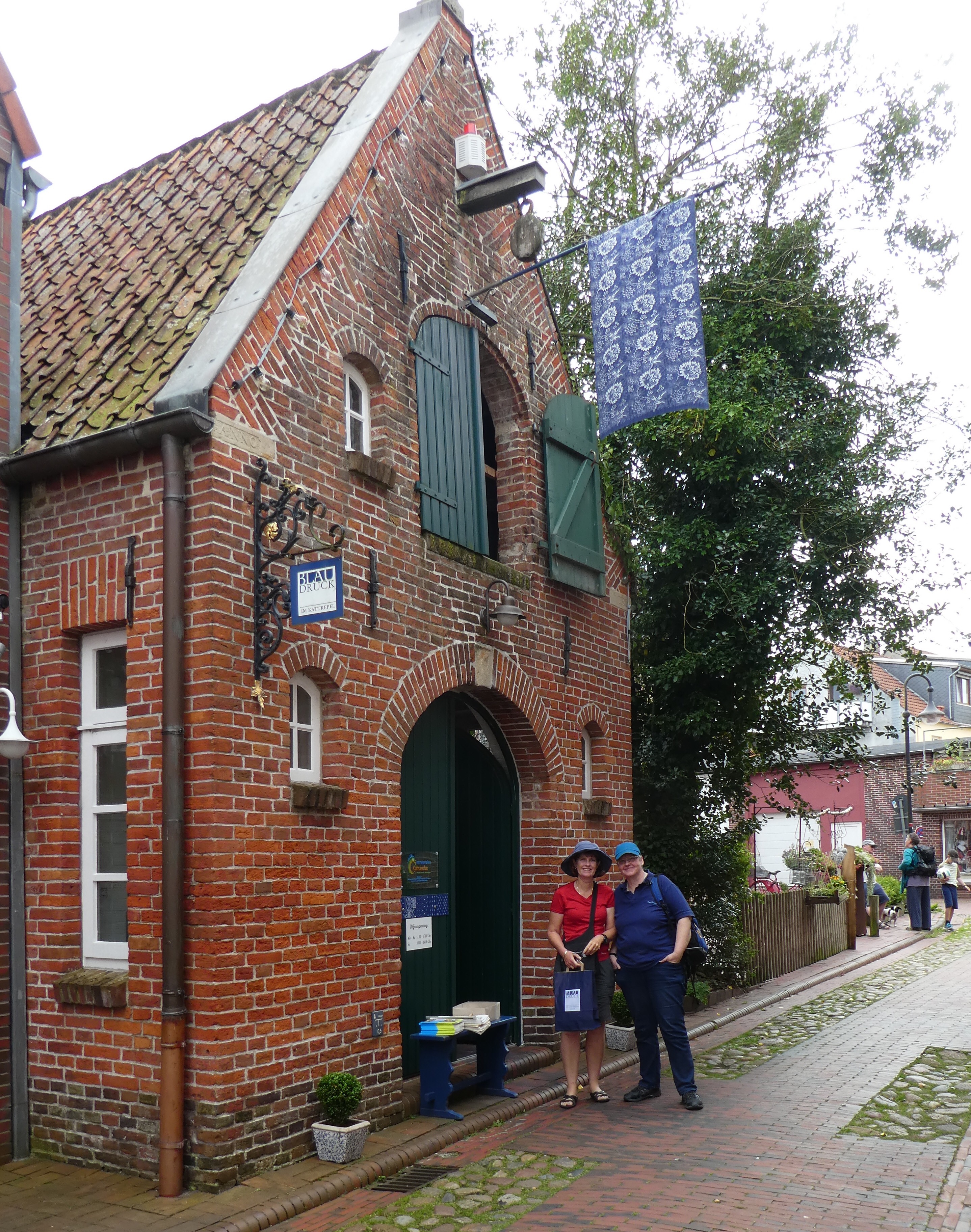 Dagmar took us on an excursion to the town of Jever , famous for its brewery and this special ancient technology of printing fabric in blue — sort of Batik type screen printing. I liked the beer 😉