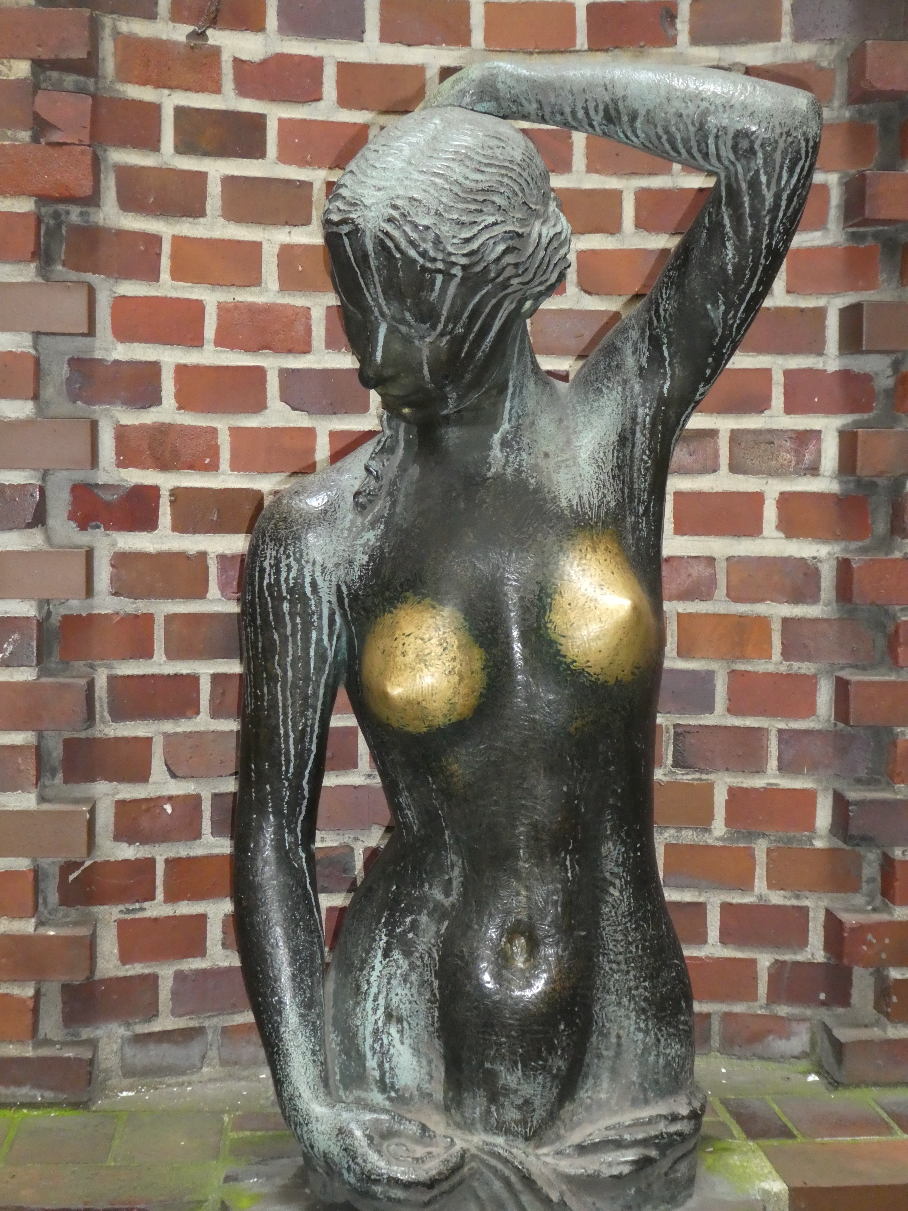Locals pass by and fondle the breasts of this interesting bronze sculpture , ensuring the vibrant colour . Naturally when in Rome —–
