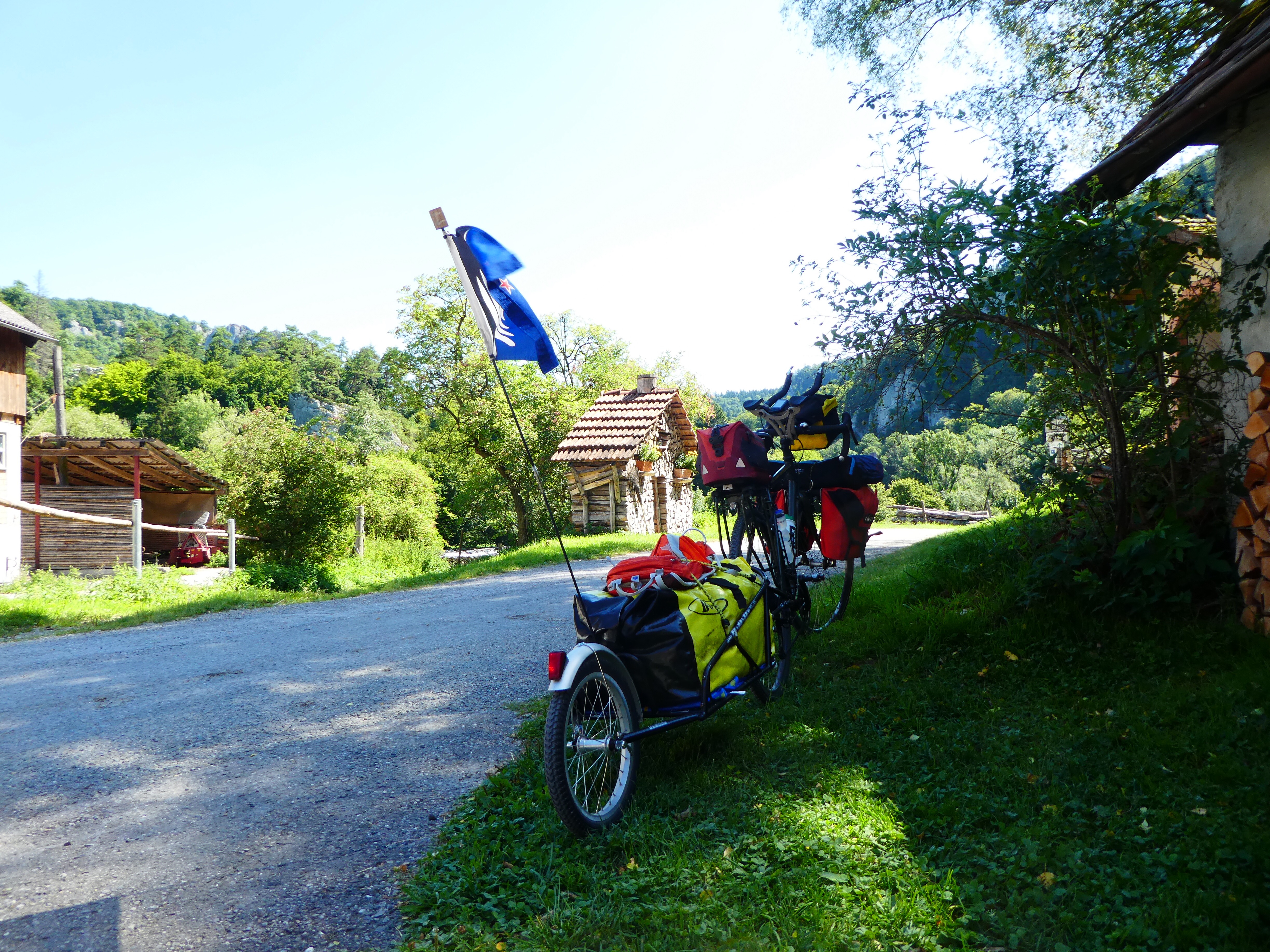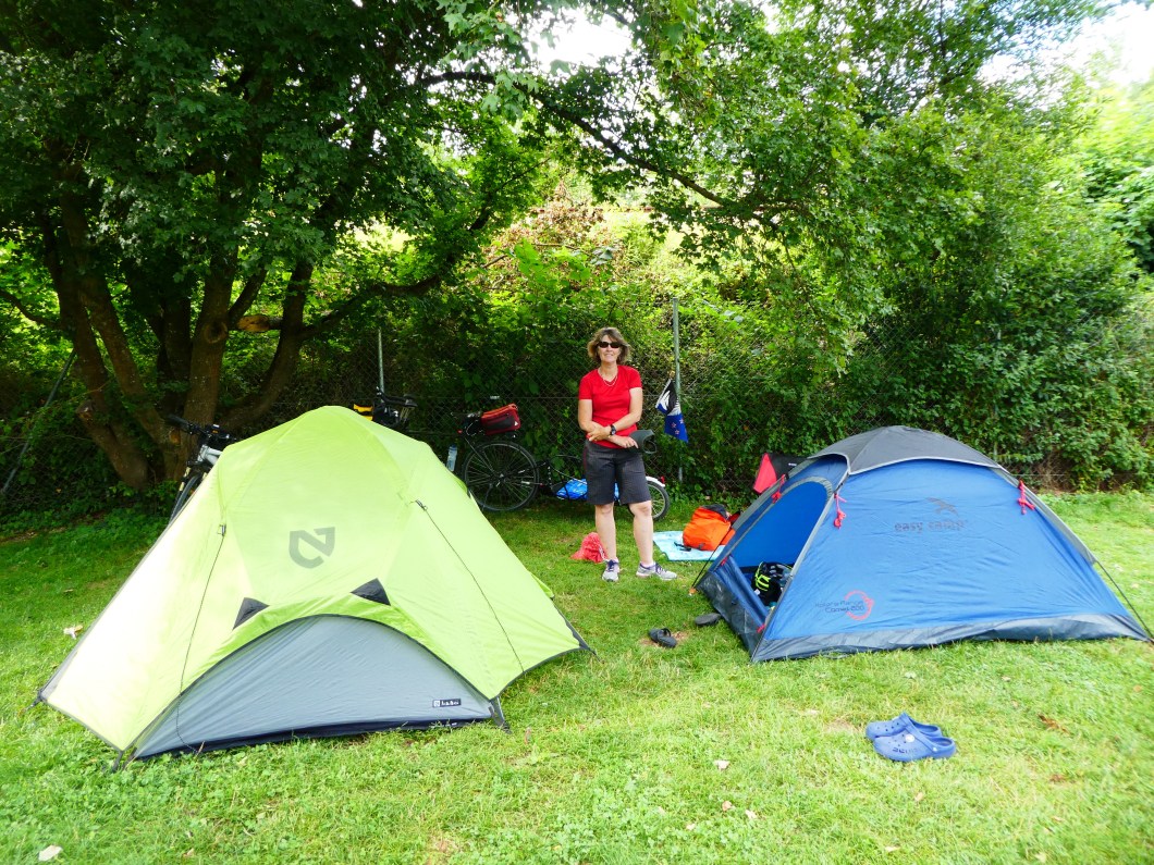 We purchased a second tent , a cheapy at 35€ , and we are able to put all our gear in it overnight. What with 3 cookers , 2 pots and a frypan , and lots of other clutter we need the space ! So far camping has been fine , with other cycle tourists to yarn with, and we have even had some nice sunny weather ( stopped now — raining again 😳