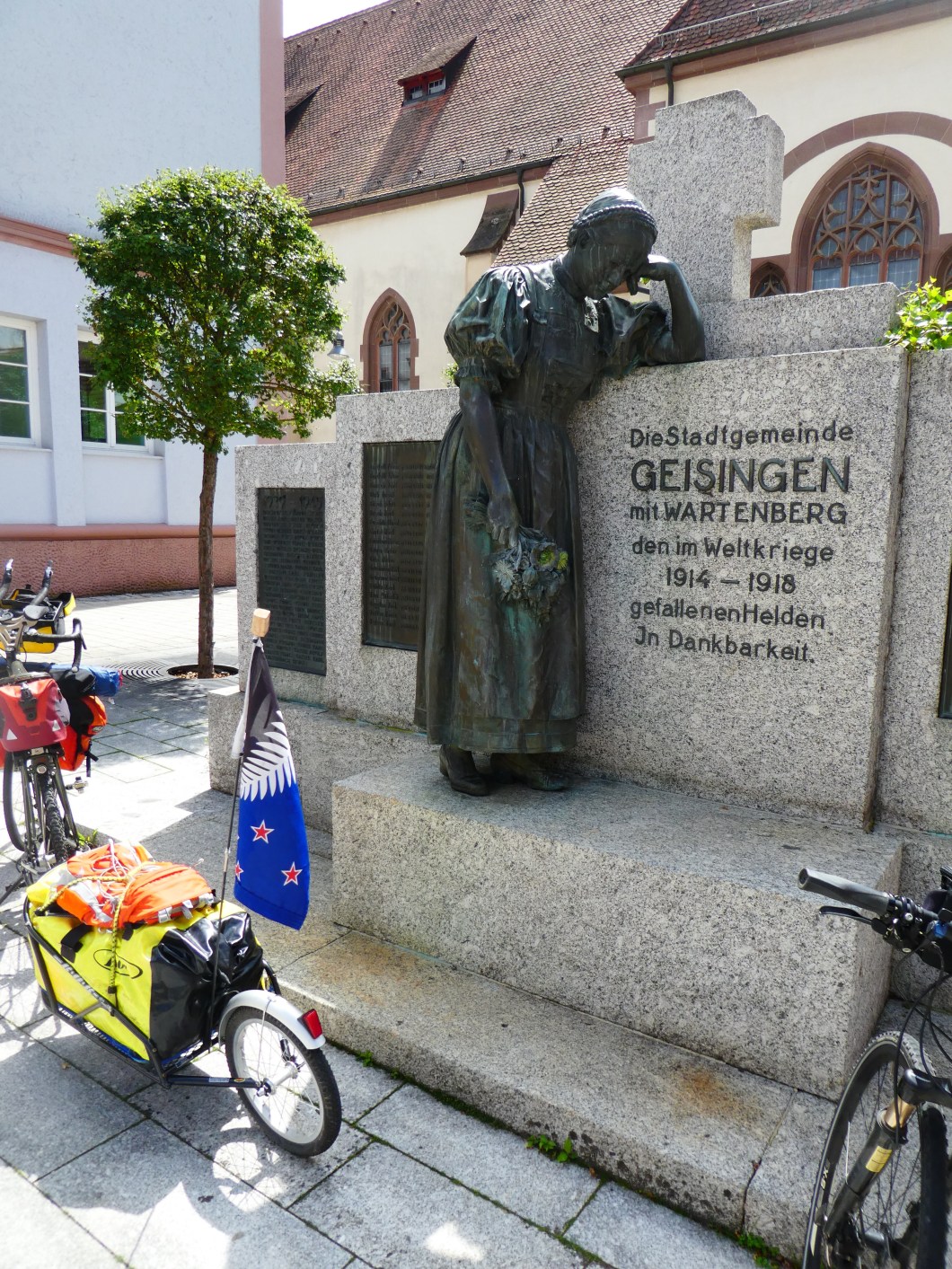 The small town of Giesingen had some interesting bronze sculptures , commemorating the senseless loss of life during WW1. She looks like the pertually grieving mother for boys who never returned . Moving .