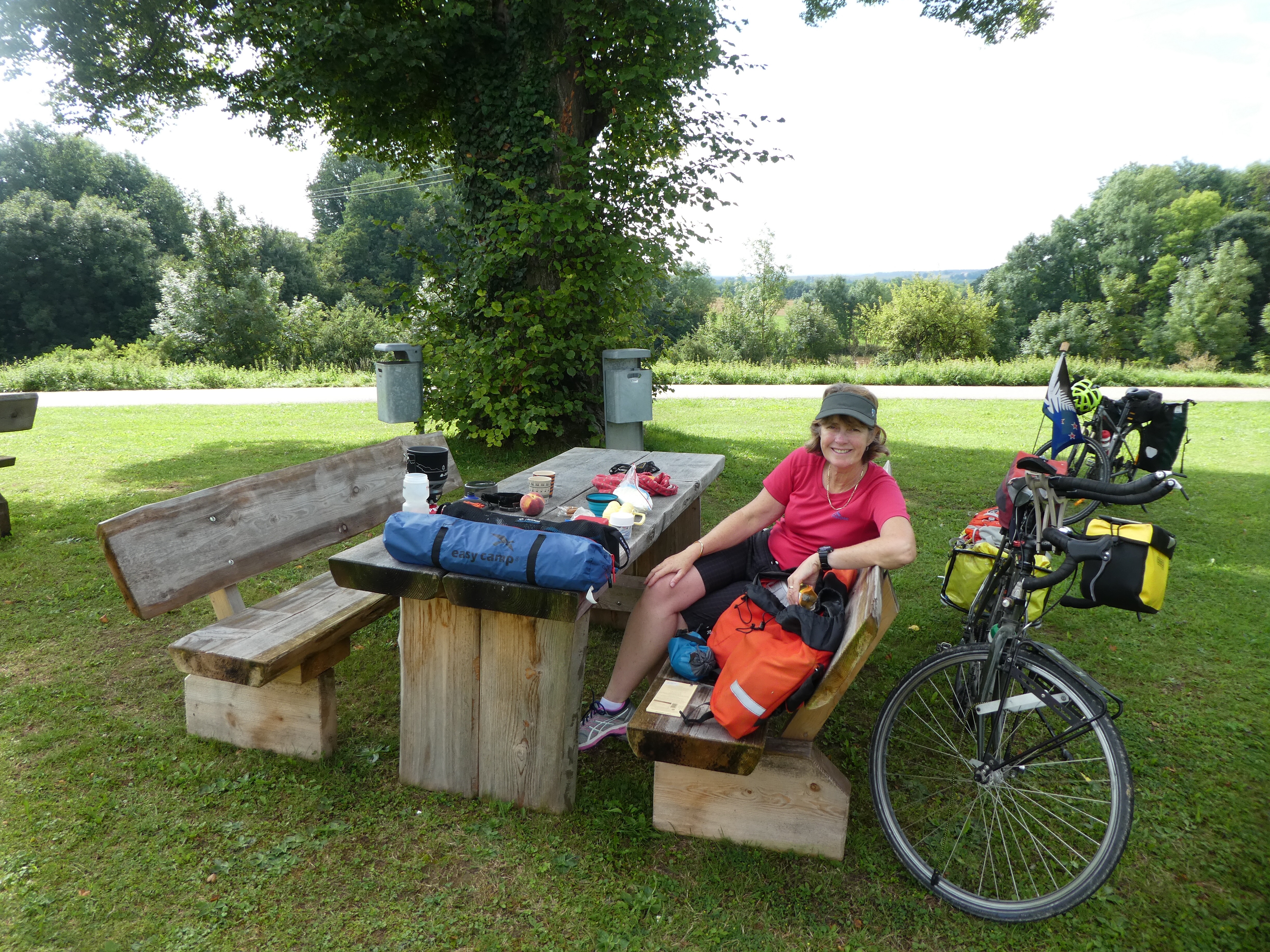 There are plenty of cyclists rest stops onroute , so we can boil the billy and Barbs can get her coffee fix. Cheaper too and the cafe coffee here in Germany is different , ” its coffee Captain Kirk , but not as we know it ” 😉