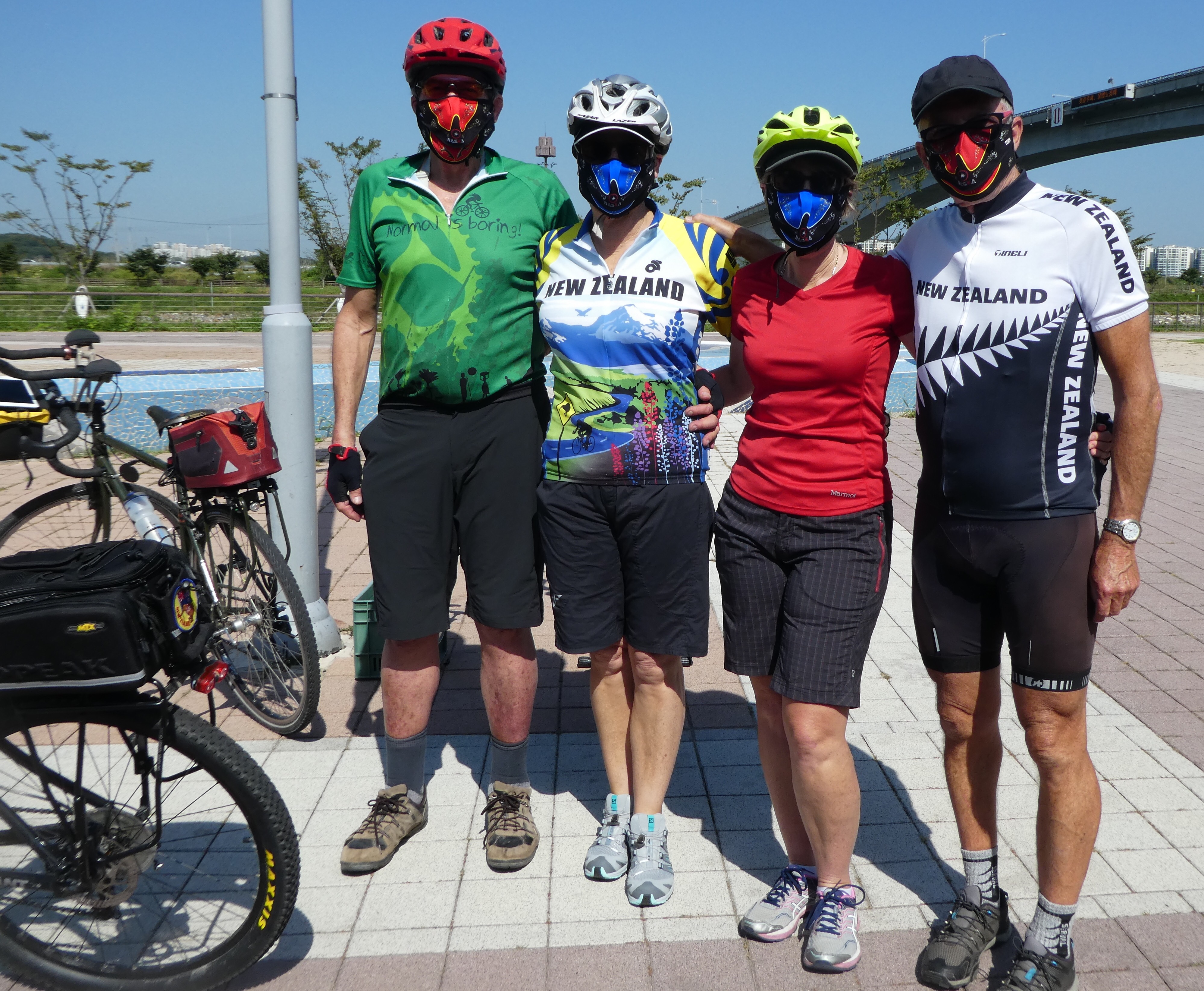 Most Korean cyclists on the trail are wearing special masks to protect themselves from the fine dust that blows in from Mongolia .When in Rome …… 😉