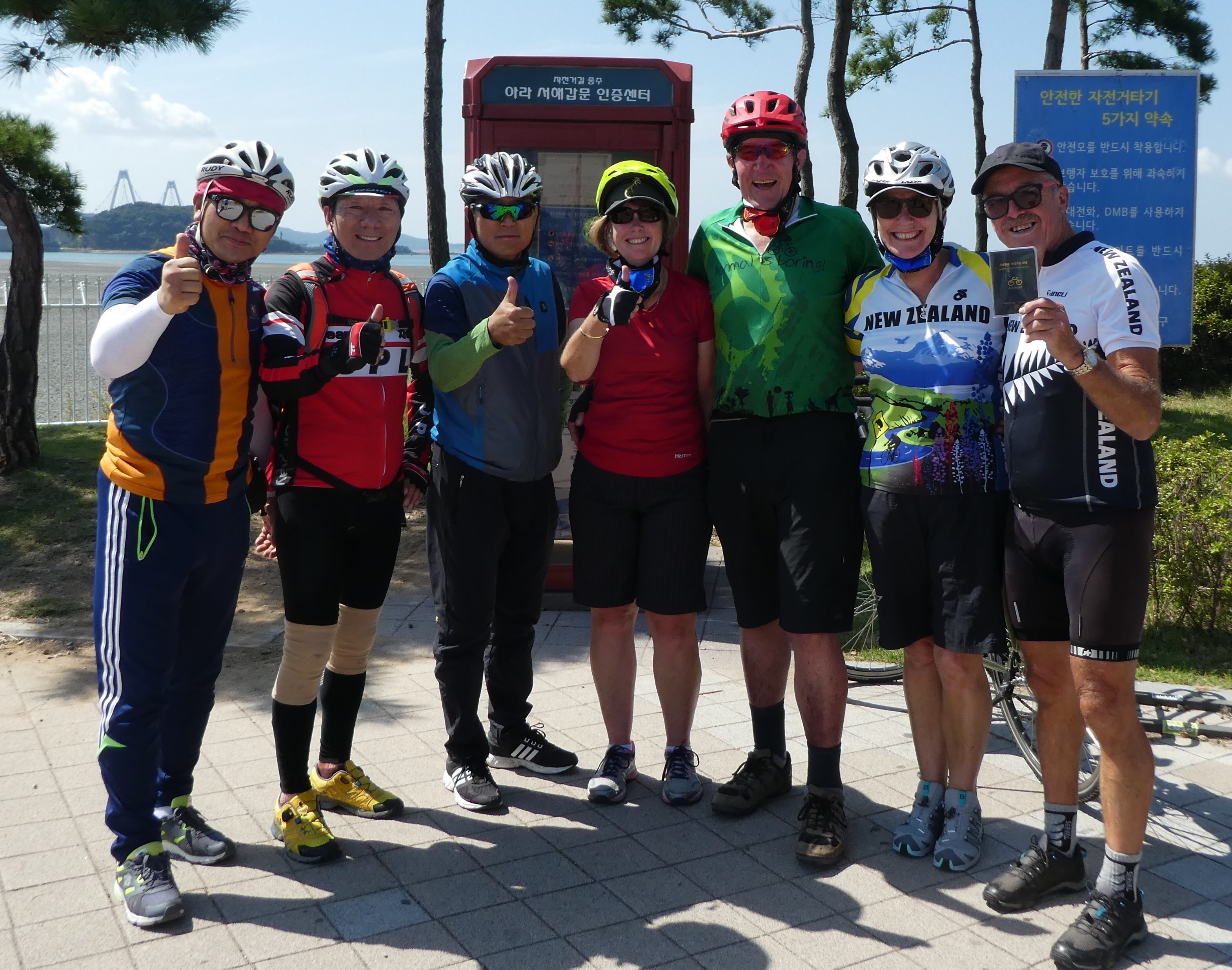 You can buy lots of cycling paraphernalia at roadside cafes and cycle repair stations , and the cycle trail has a steady stream of locals out cycling. We finally got a serious problem fixed on Barbs bike that had a failing rear hydraulic break. A complete new unit , callipers and handbreak lever was replaced in an outside repair station all for 50,000 WON ( about $50 nz dollars )