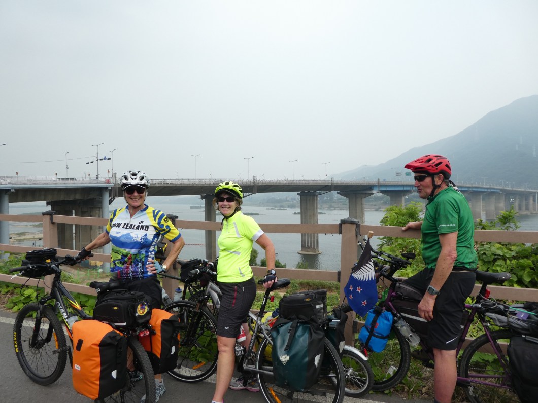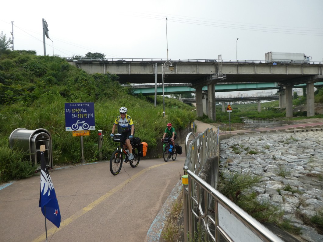 Started at 8:15am , a hazy cloudy day that promised rain and possible thunder storms. Out onto the Han river trail and very slowly working our way out towards the countryside. Seoul is huge so this was a mission. Still lots of Korean cyclists out cycling , but as the hours past they started to thin out . An impressive range of bridges cross the Han river , testament to the technological capabilities of the Korean people .