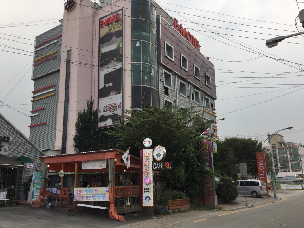 Early afternoon , with threatening weather and not to mention a few tired bodies we decided to stop at Yangseomyeon , a small run down looking place that boasted a motel — Motel E