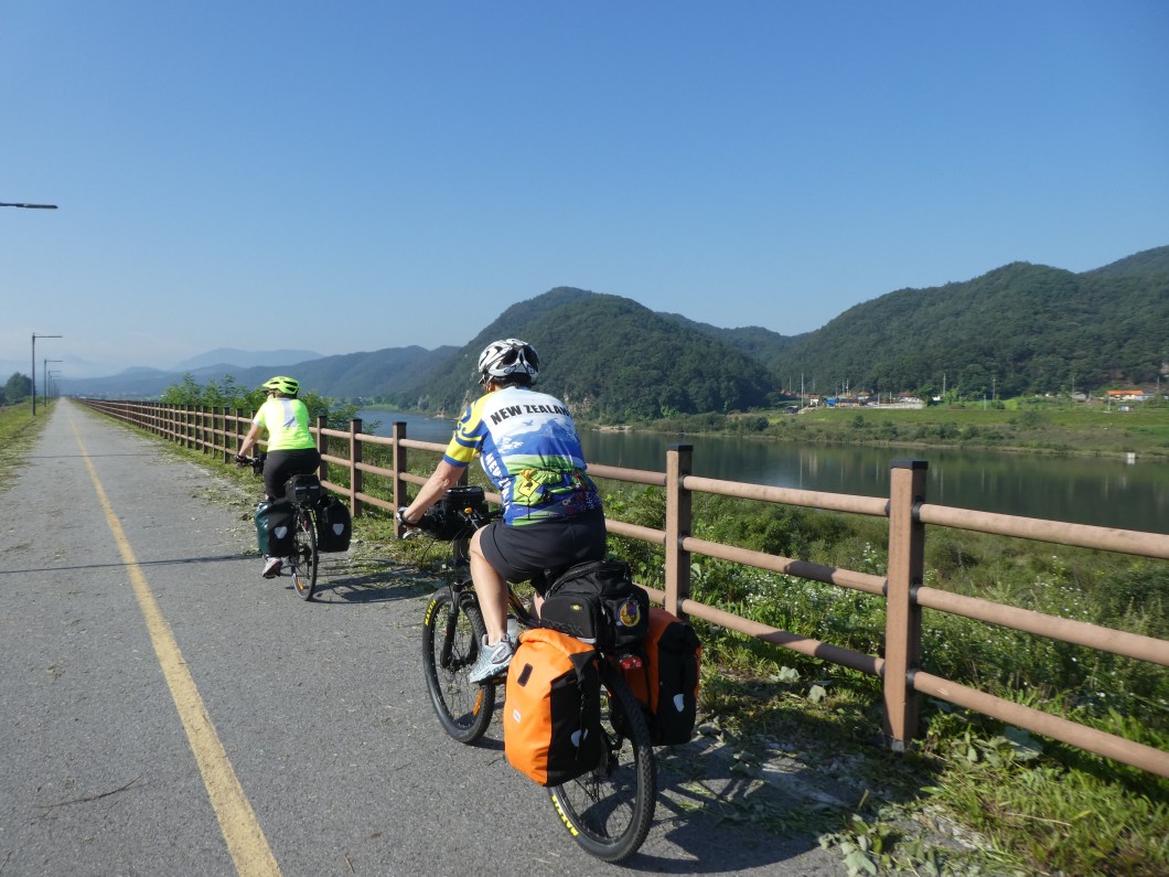The last section was in stunning countryside , up a valley to this town called Suanbo. A spa town where Koreans holiday and enjoy the local delicacy , pheasant. Has a bunch of hotels and scores of restaurants. Have seen no ( Zero ) European tourists here , and in fact so far Zero European cycle tourists on the trail. One or two Korean cycle tourists travelling with light bachpacks is about it. It’s an almost secret gem not many are aware exists.