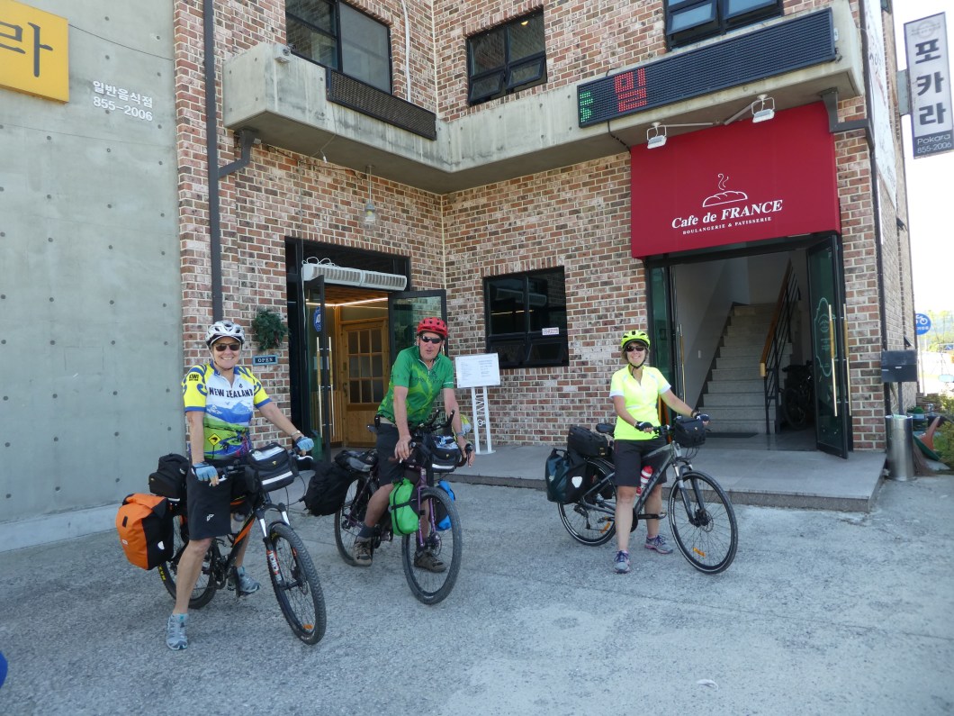 The day was dragging on somewhat and we were all feeling the heat and the accumulated kms. With about 20 kms to go we chanced on a great coffee stop where we had plenty of fluids and a collection of interesting Korean pasterty treats.