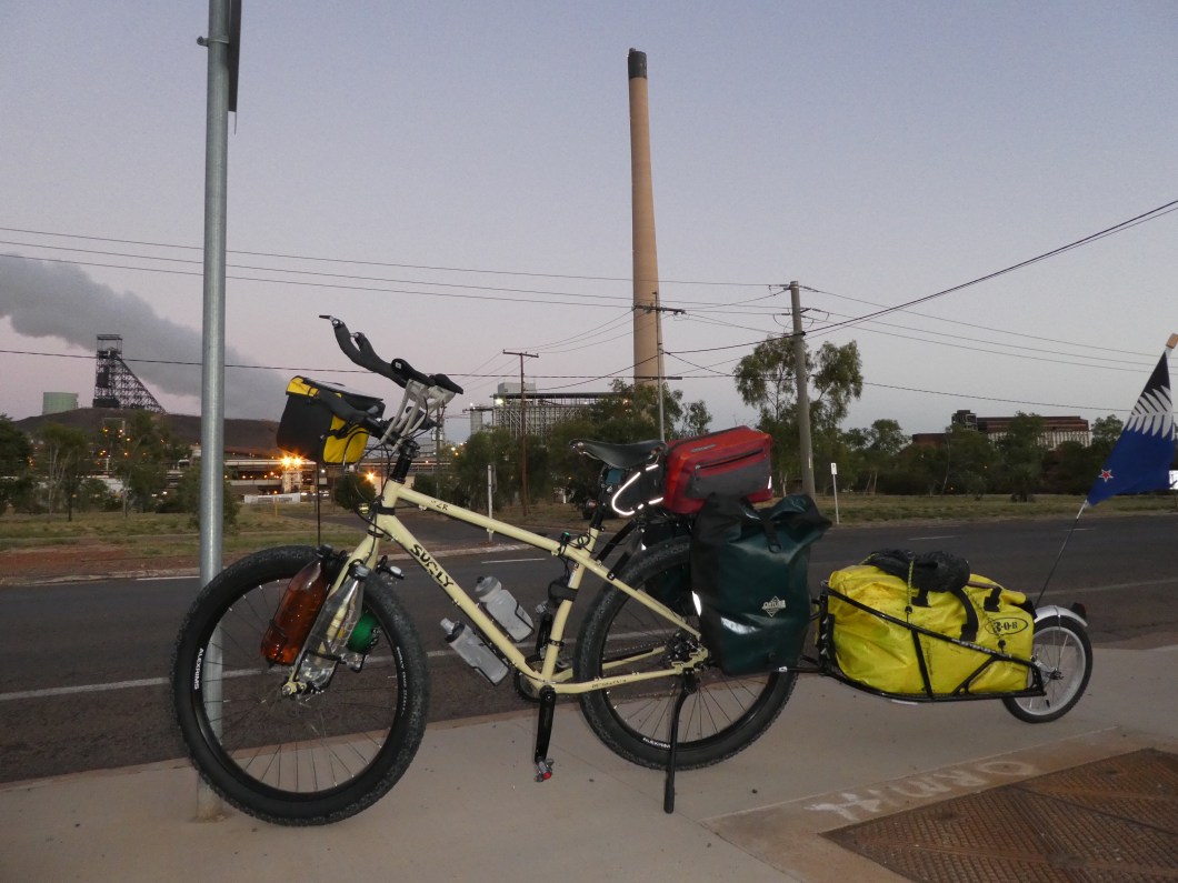 Set off from Mount Isa , Top pic is the chimney from the lead smelter right close to the town . The day warmed up quickly as I settled into the ride and I started to work my Way thru the water. As the day progressed the water become distinctly tepid , odd.