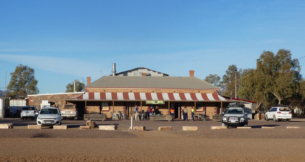 Rolled into Parachilna at 2:30 pm , still in time to order lunch. With an extensive list of so called “ feral “ foods to choose from ( Emu , Camel , Roo ) Parachilna pub has specialised in great food and gets a steady trickle of customers from tourists and others heading north. I splashed out on the Roo burger.