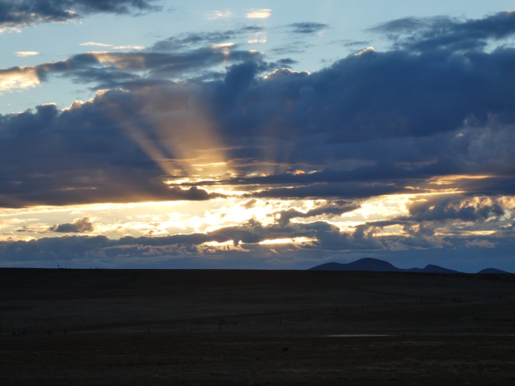 Started at 7 am just on first light. Stopped on the outskirts of town as the rising sun was so spectacular . A stormy night , with some rain , resulted in lots of clouds and the light danced with beams spreading. Enjoyed the scene , and needed the sun to warm up