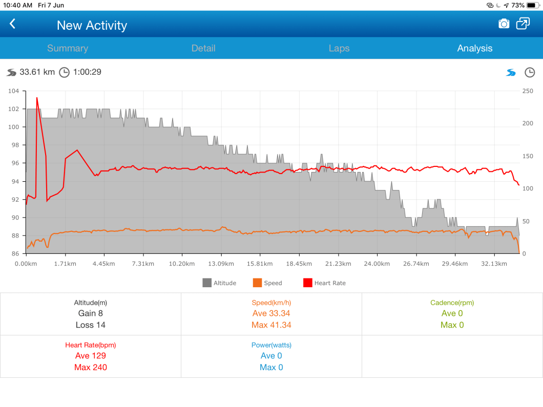 The data speaks for itself if you have ever ridden bikes. The balance of the ride was also quick as at the end ( 92 km ) the average was still 32 km per hour .