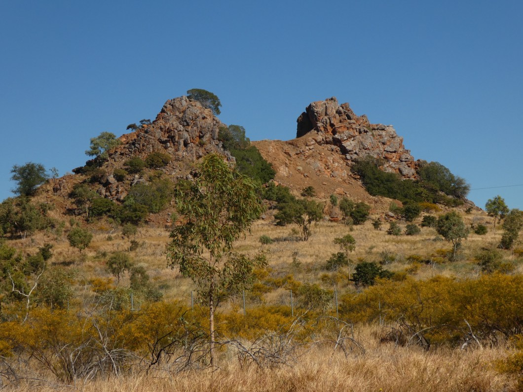 The terrain was such a contrast from the last 1000 km or so. Now some termite mounds can be seen and the road has lots of dips , rises and creek crossings. This country is now real mining territory and today I had several of these huge ore road trains thunder past. The drivers move right into the right hand lane so as to be completely safe in passing cyclists. Never had any scary moments in the last few days .